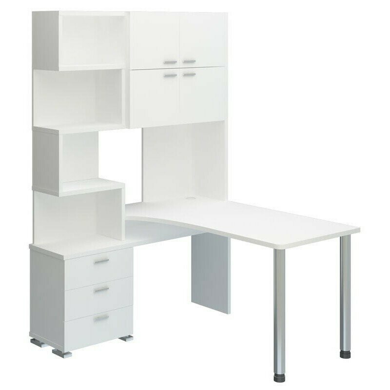 Стол компьютерный Мэрдэс СР-500М/140 БЕ-ПРАВ Белый, с надстройкой, угловой, 130х140х199 см