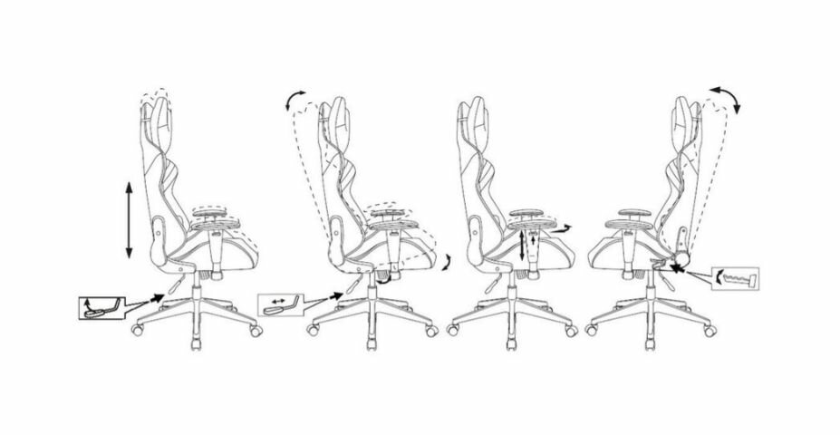 | Регулировка | высоты подголовника / высоты подлокотников / высоты поясничного упора / высоты сиденья / глубины сиденья / жесткости качания / наклона спинки / угла подлокотников |
