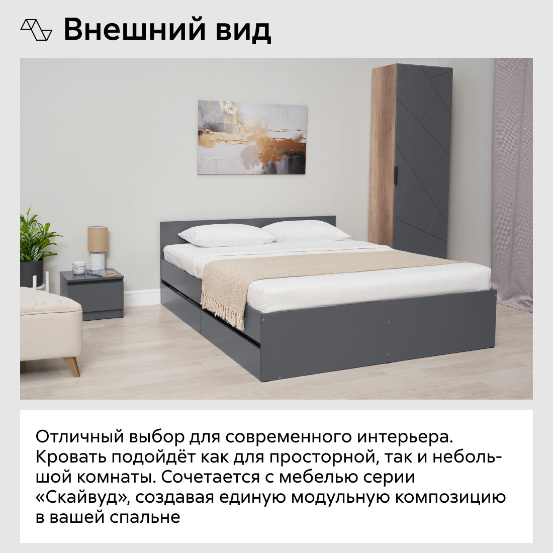 СохранитьКровать двуспальная с ящиками Нонтон Скайвуд, 160*200 см, графит серый интересное: