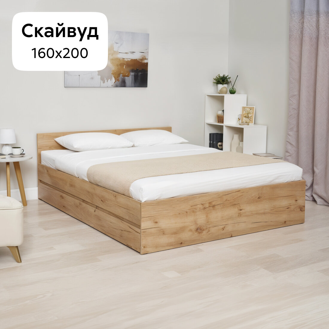 Кровать Нонтон Скайвуд с ящиками дуб золотой 163.4x203.2x67 см