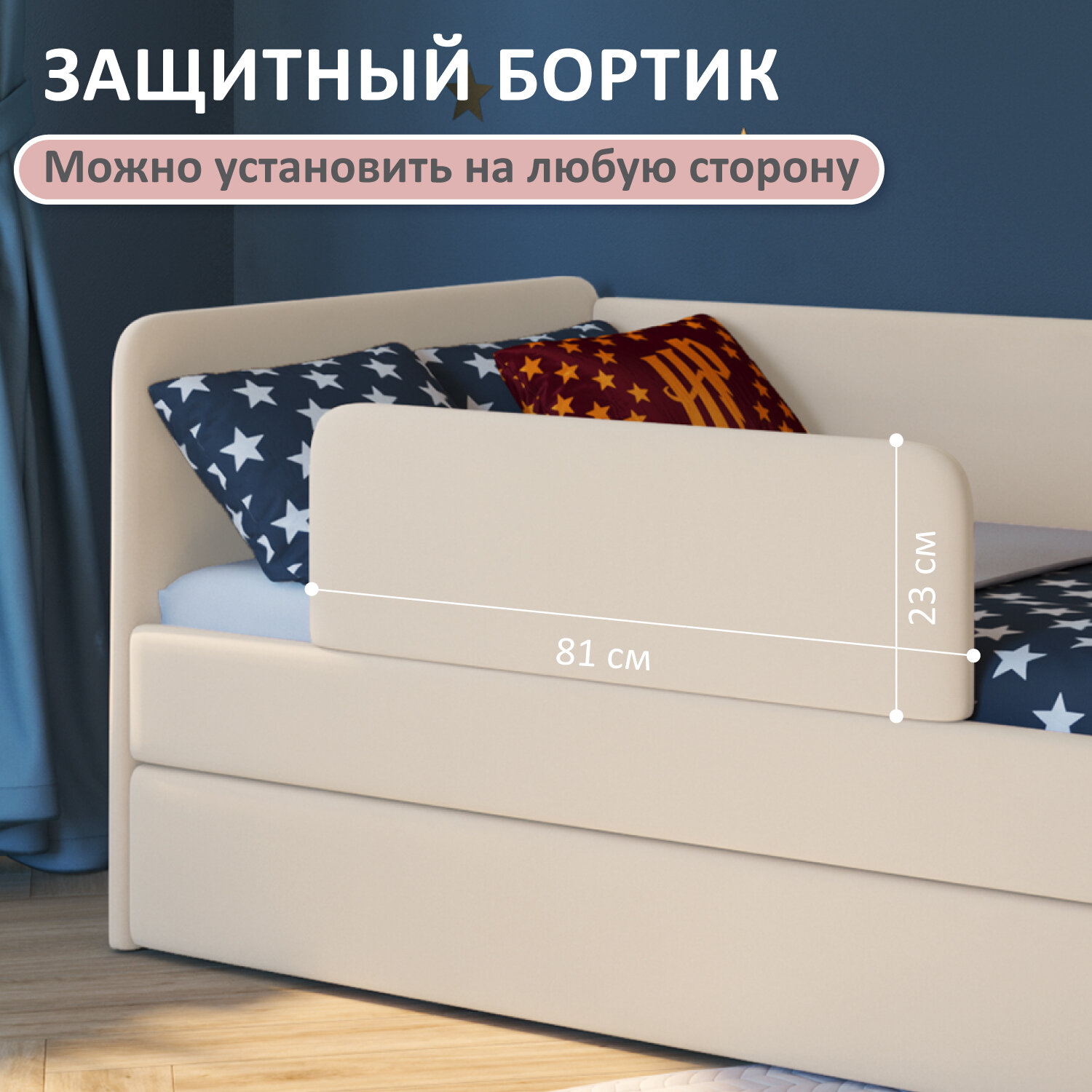 Купить Кровать детская 180х80 Romack Jenny с бортиком и ящиком, с мягким изголовьем, цвет: светло-бежевый микровелюр