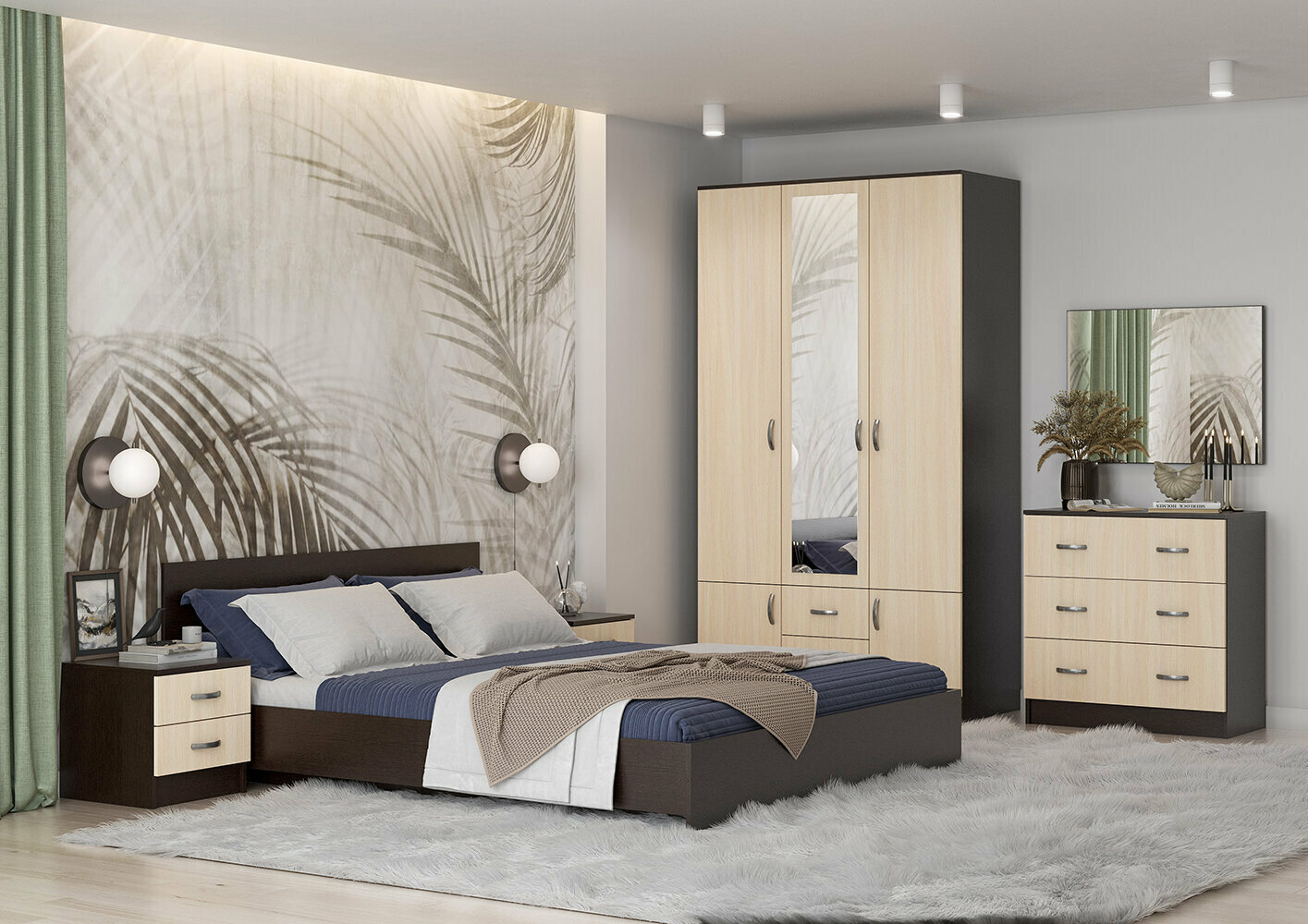 1 шт мс для спальни Ронда КР-140 (без основания) венге/венге + 1 шт мс для спальни Ронда основание КР-140 ЛДСП белый (Интерьер-Центр)