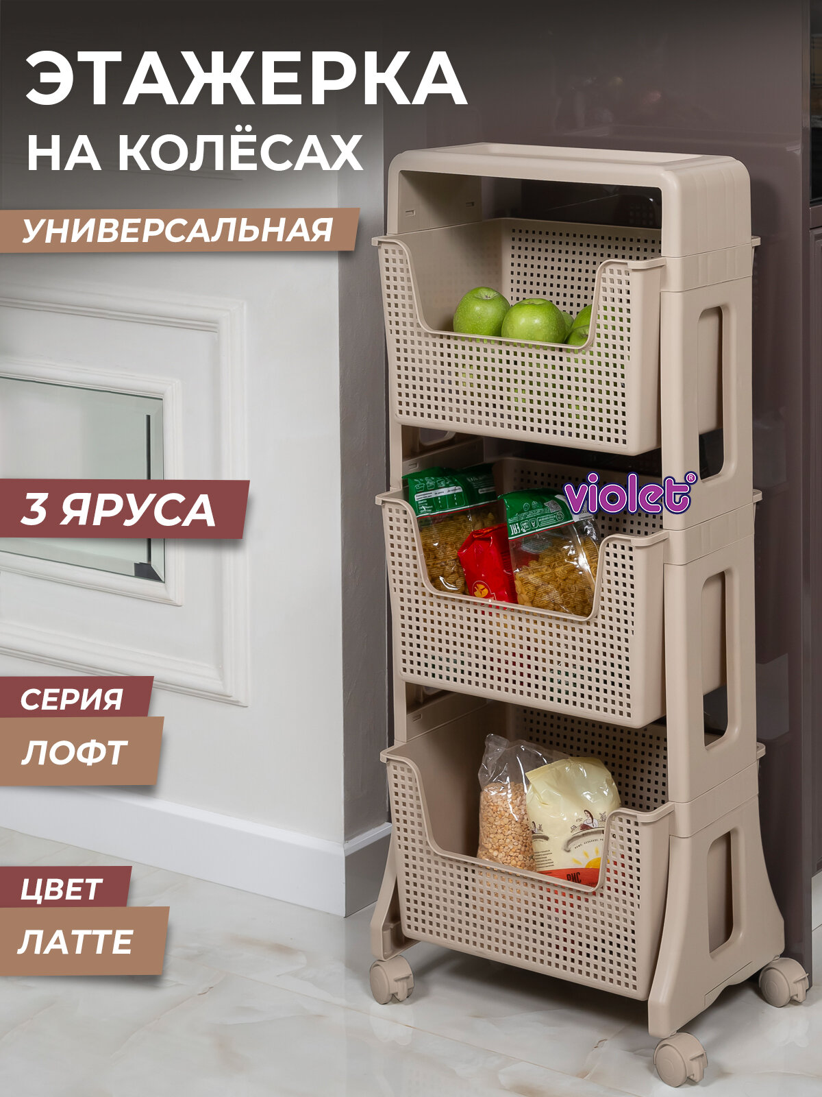 Ниже Вы можете прочитать отзывы на Этажерка на колесиках Лофт 3 яруса, цвет латте / напольный органайзер для хранения на кухне, в ванной, ознакомится с подробными характеристиками, посмотреть интересные обзоры и фотографии на Этажерка на колесиках Лофт 3 яруса, цвет латте / напольный органайзер для хранения на кухне, в ванной.