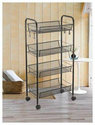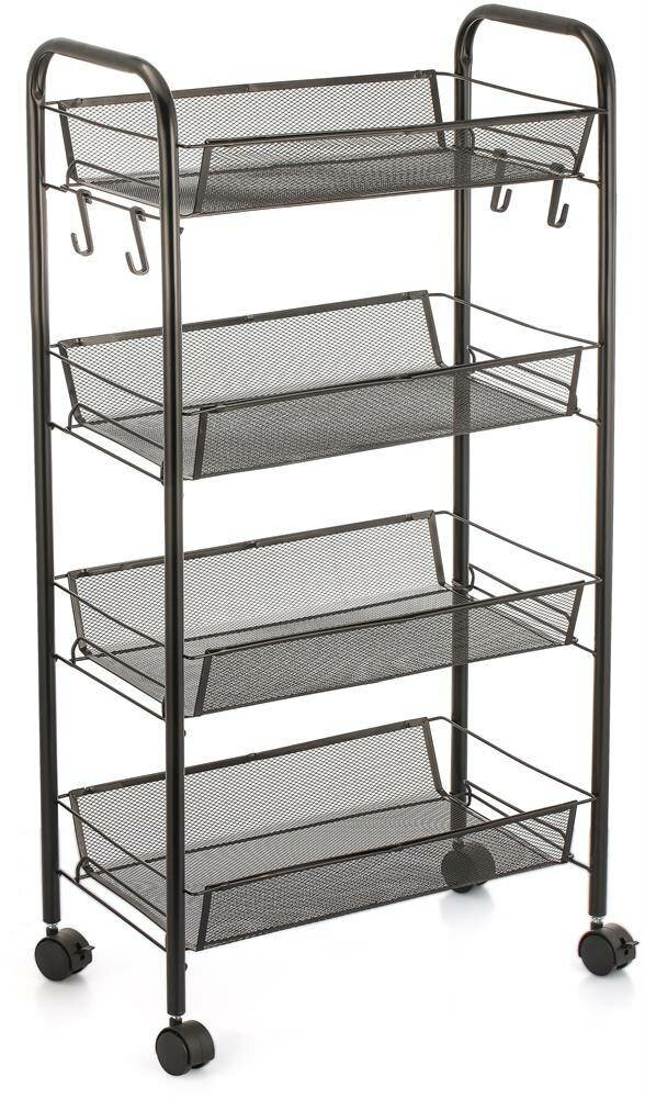 Этажерка на колесиках Лофт 4 яруса, цвет серый / напольный органайзер для хранения на кухне, в ванной
