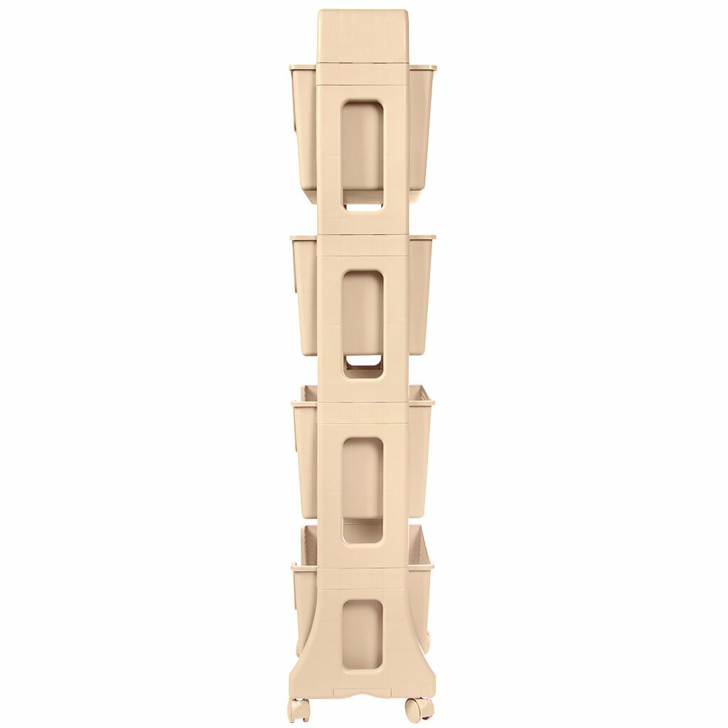 Этажерка на колесиках Лофт 4 яруса, цвет латте / пластиковый органайзер для хранения косметики для ванной на колесах / подставка напольная для кухни