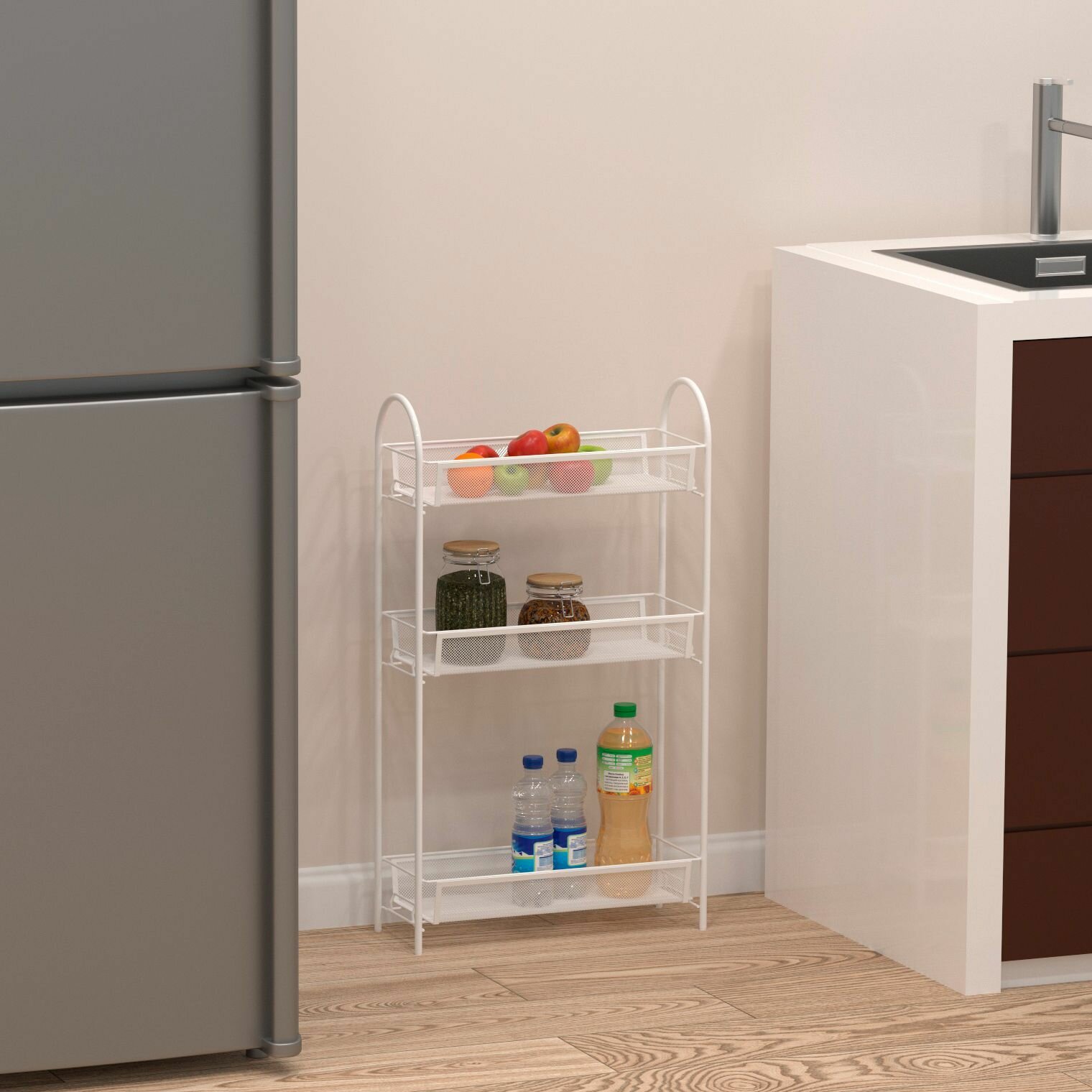 Купить Этажерка ЗМИ Ладья 13 для кухни узкая напольная металлическая, белая