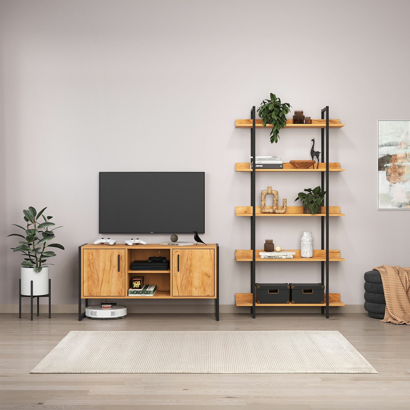 Стеллаж тумба Frame 2 секции Дуб Вотан, черный металл 670х778х300