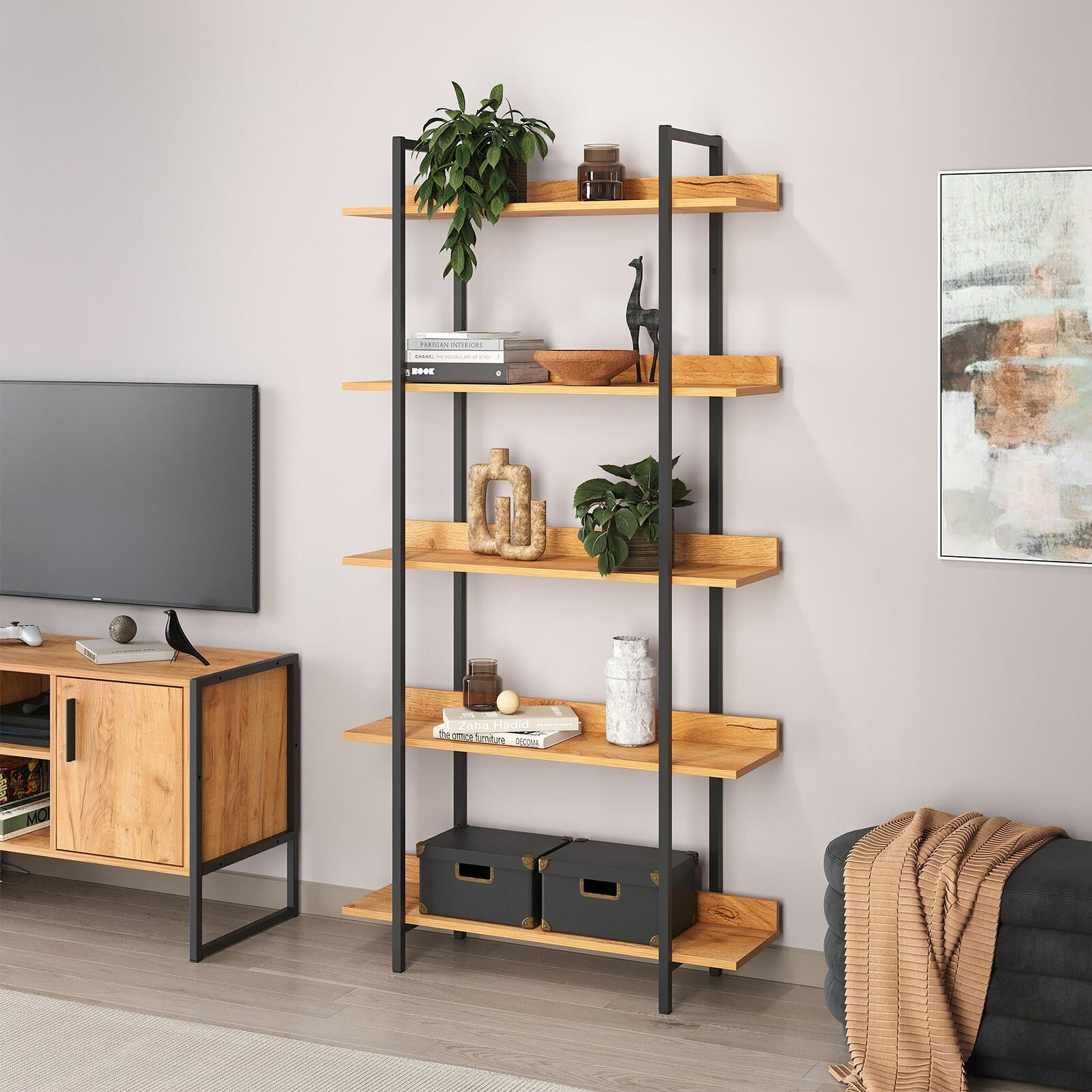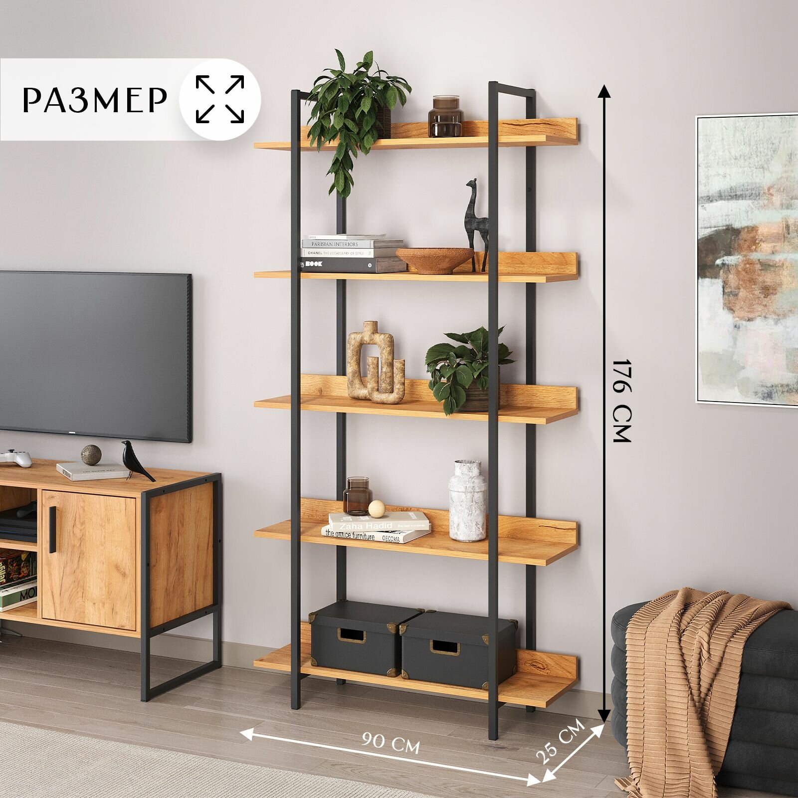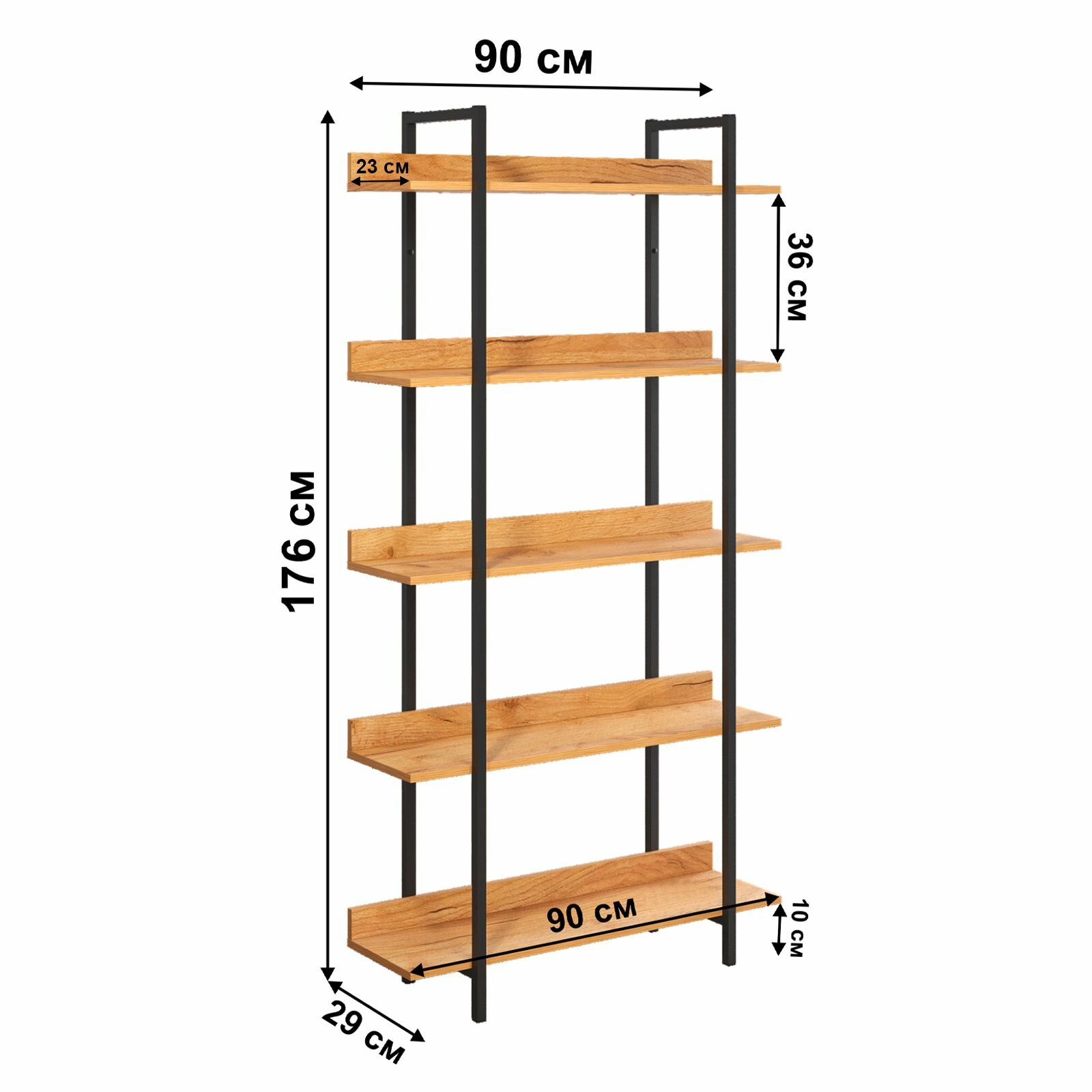 Купить Стеллаж Tokyo Plus ЛДСП Дуб Вотан, Черн. металл. 900х1758(h)х290