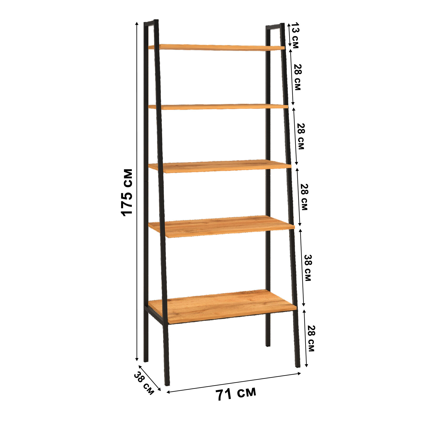 Стеллаж этажерка Tokyo Дуб Вотан, Черн. металл. 580х1544(h)х320