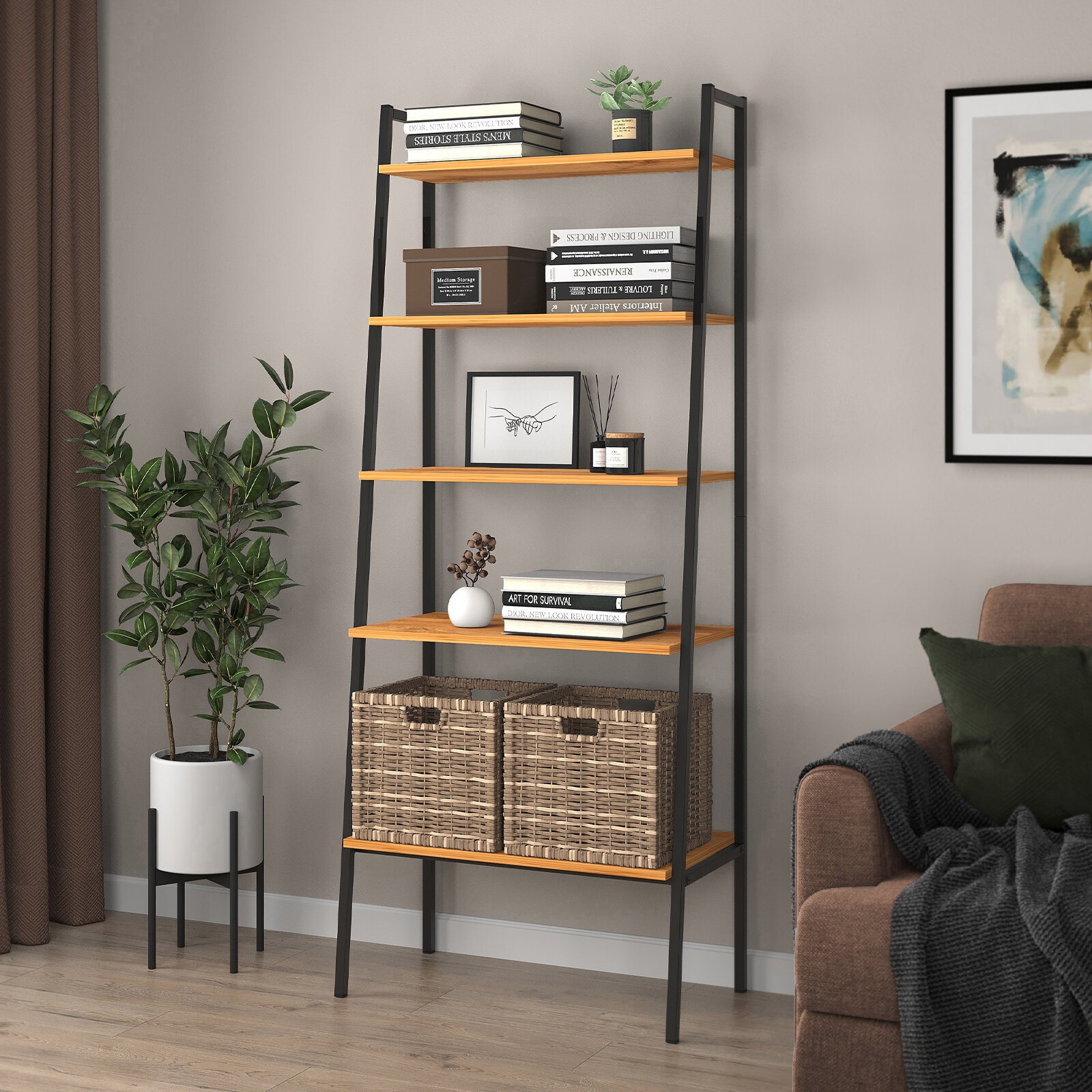 Стеллаж деревянный Нонтон Симпл графит 40.2x51.4x190 см, с ящиками