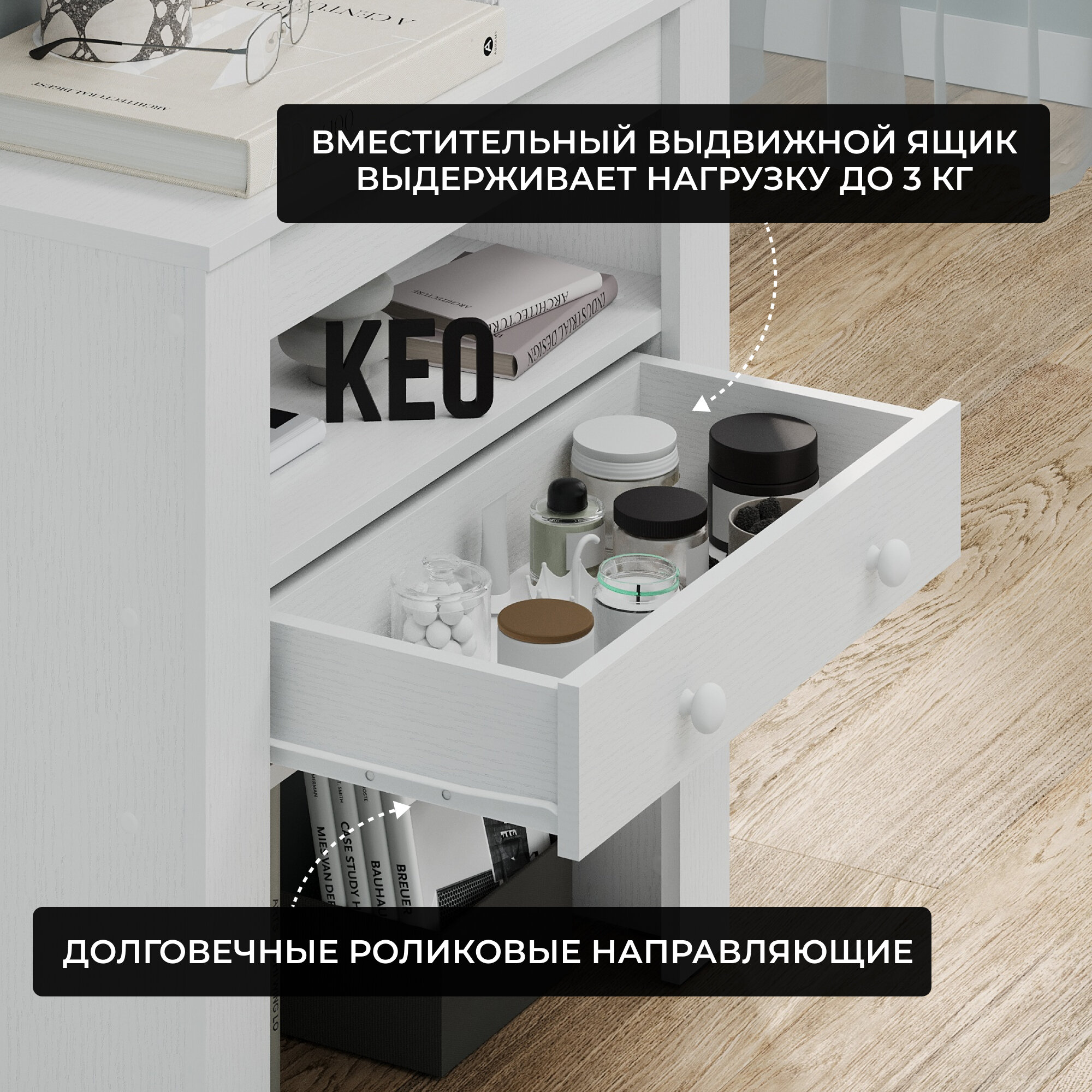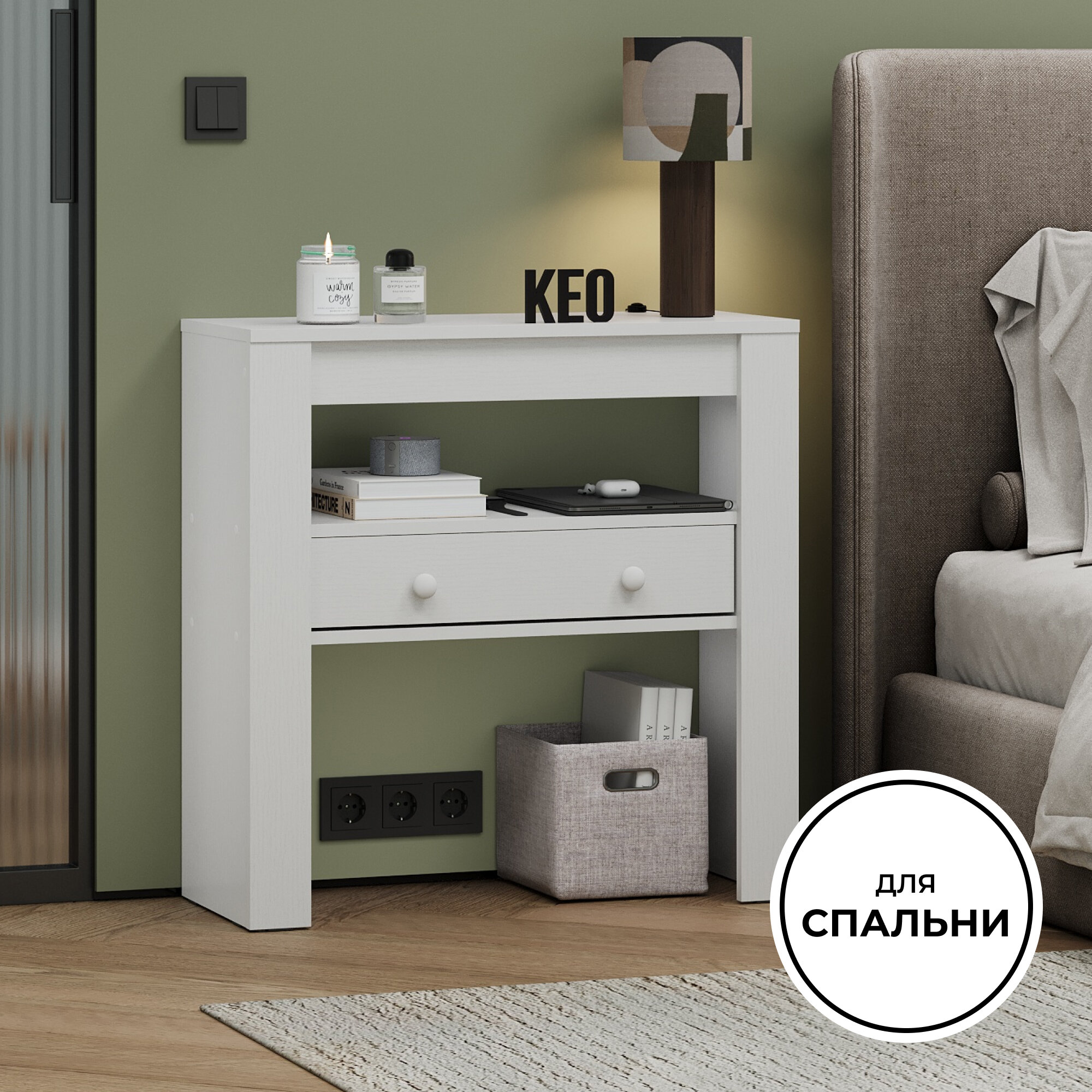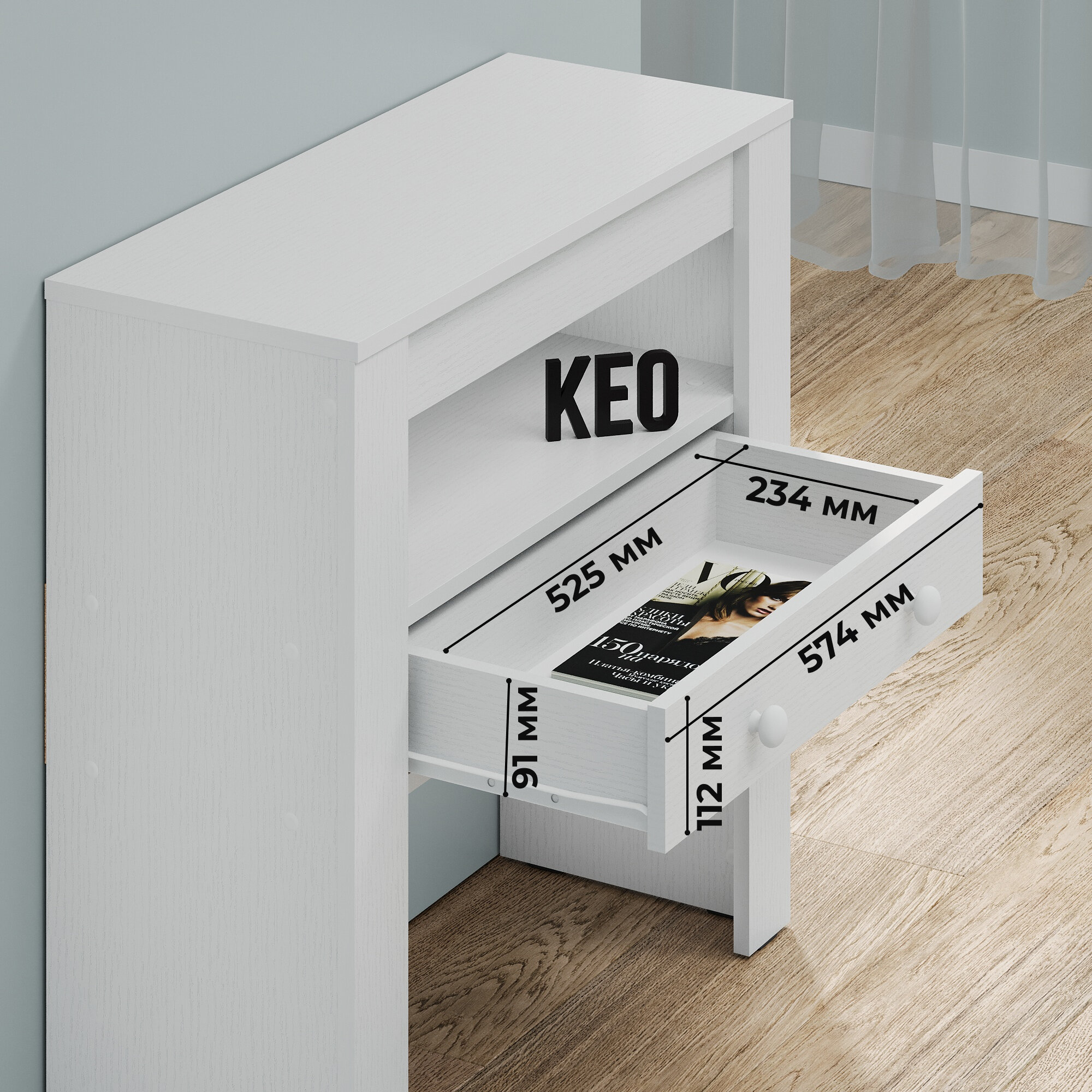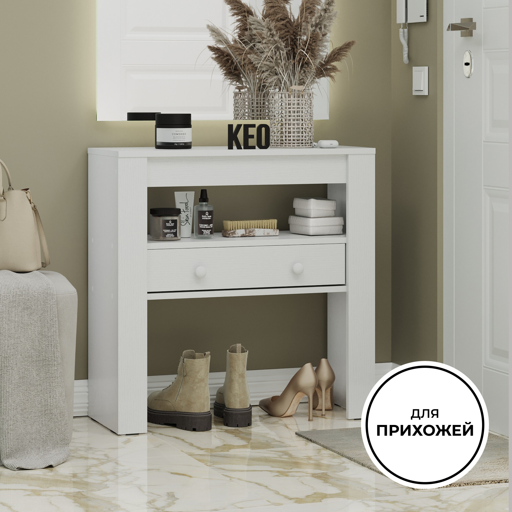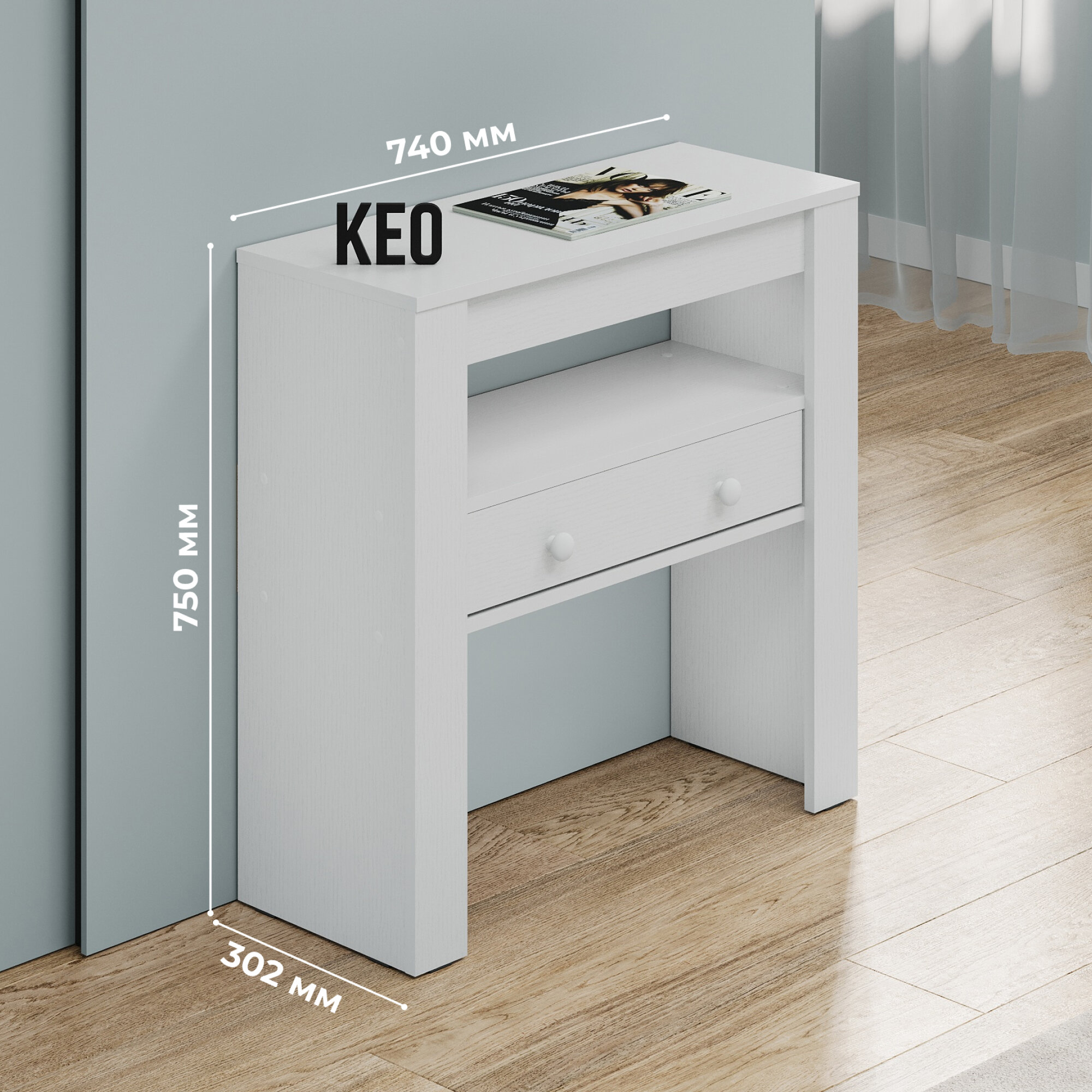 Туалетный консольный столик с выдвижным ящиком Кео СЛК-203 белый для спальни гостиной прихожей