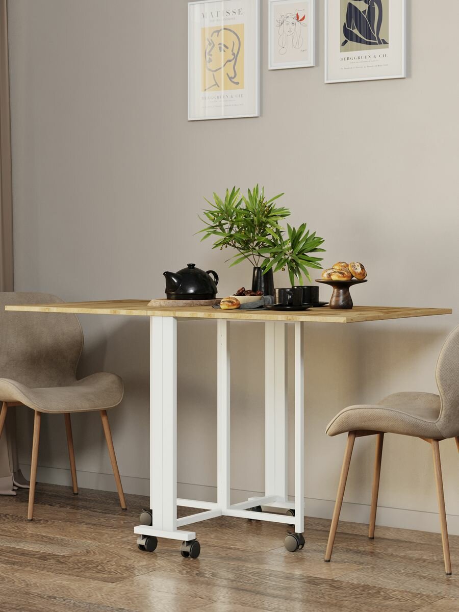 Купить Стол-книжка для кухни и гостиной раскладной узкий компактный KM LOFT белый/вотан