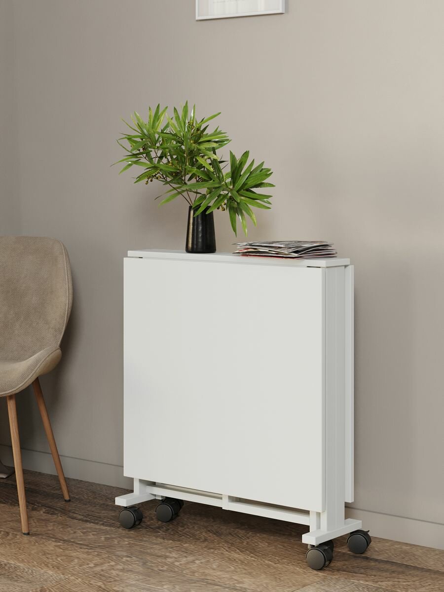 СохранитьСтол-книжка для кухни и гостиной раскладной узкий компактный KM LOFT белый/белый интересное: