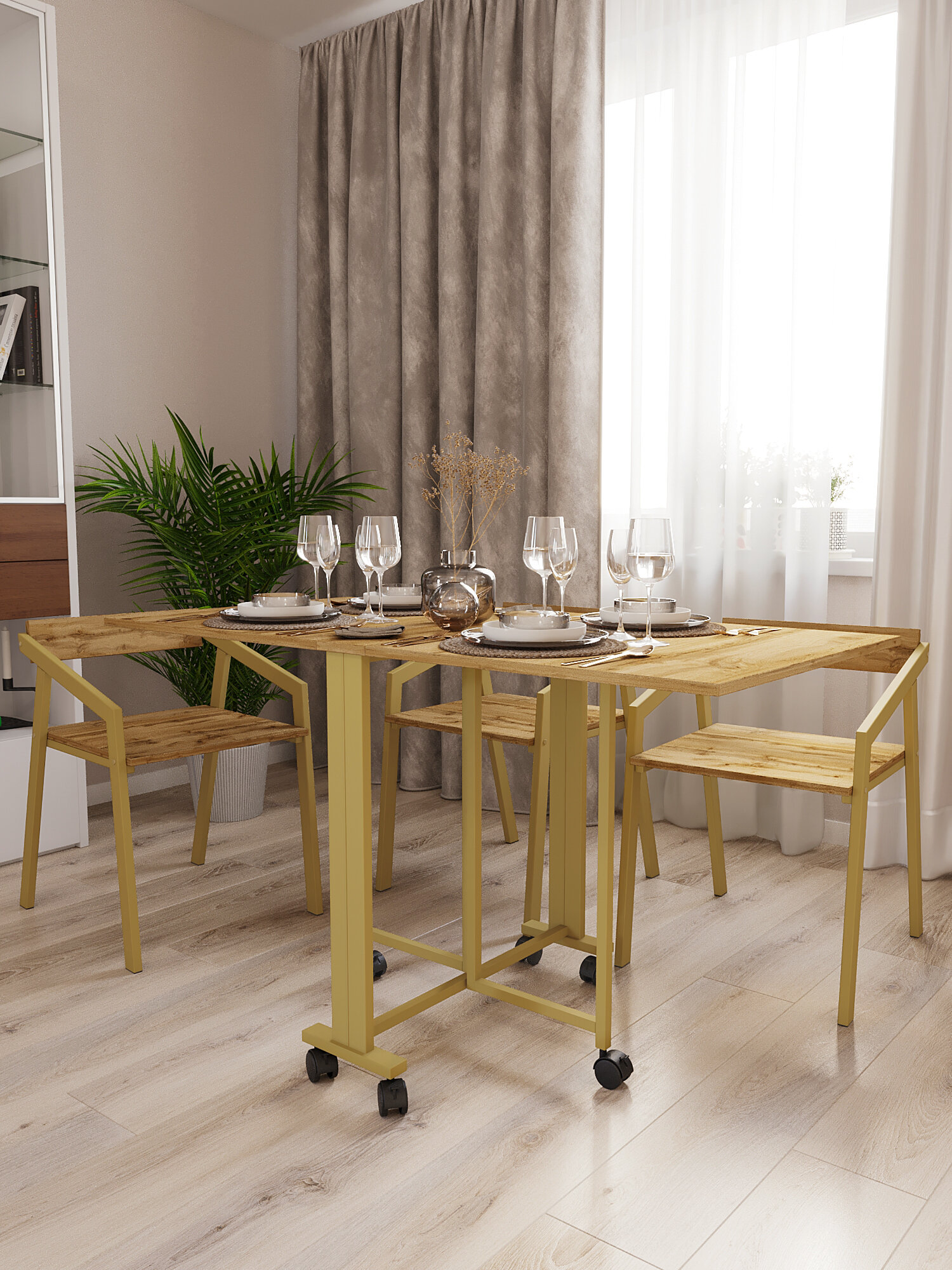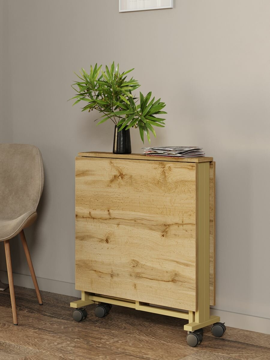 СохранитьСтол-книжка для кухни и гостиной раскладной узкий компактный KM LOFT золотой/вотан интересное: