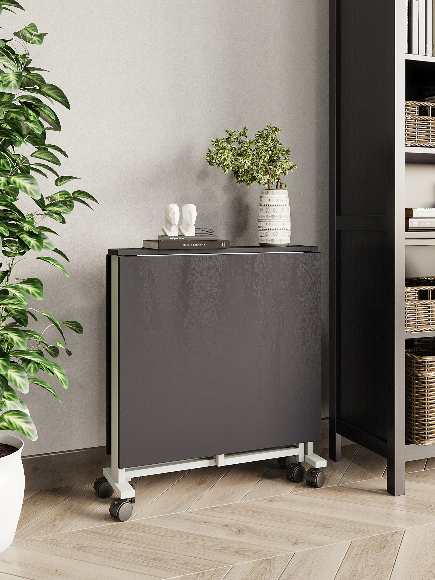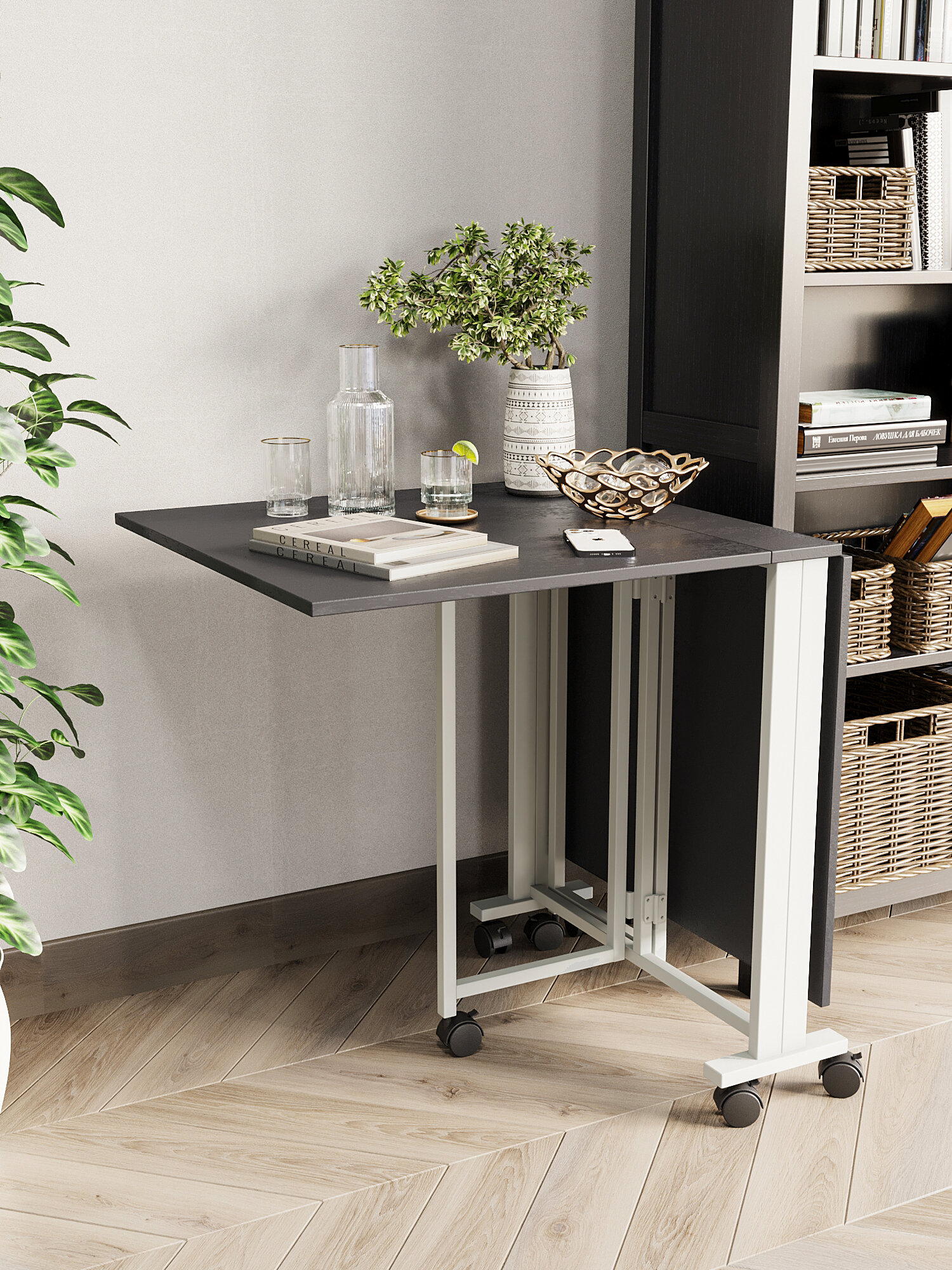 Стол-книжка для кухни и гостиной раскладной узкий компактный KM LOFT черный/белый
