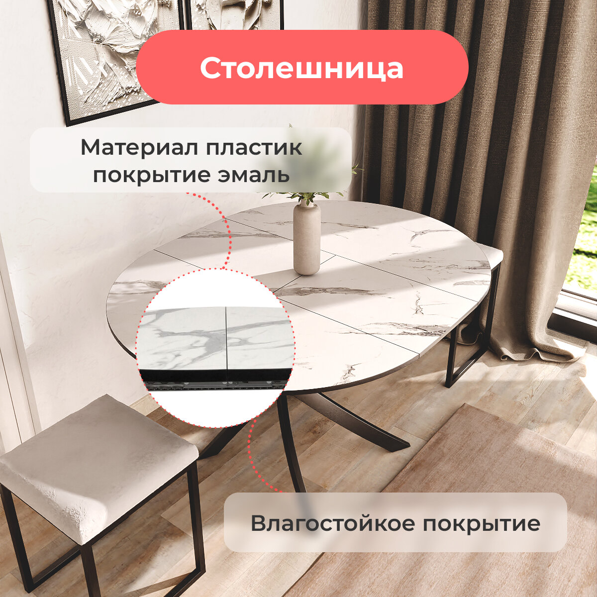 СохранитьСтол круглый обеденный Lerosco, раздвижной, белый мрамор, 90(120)х90х75 см интересное: