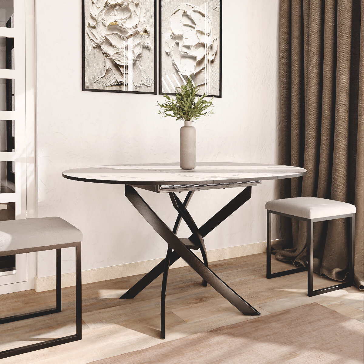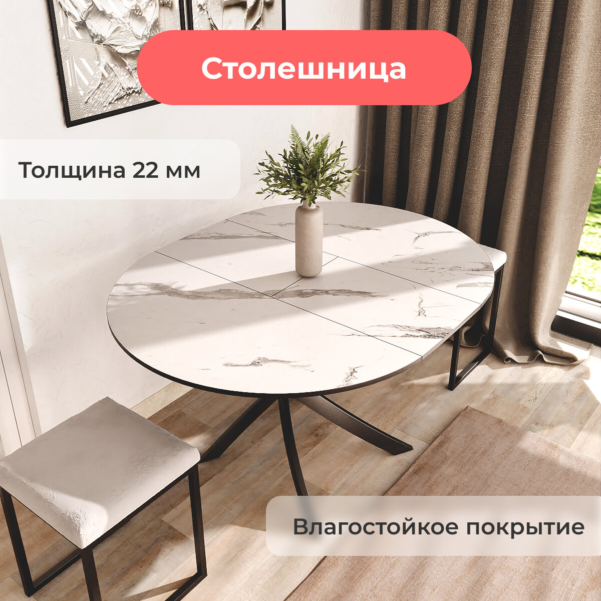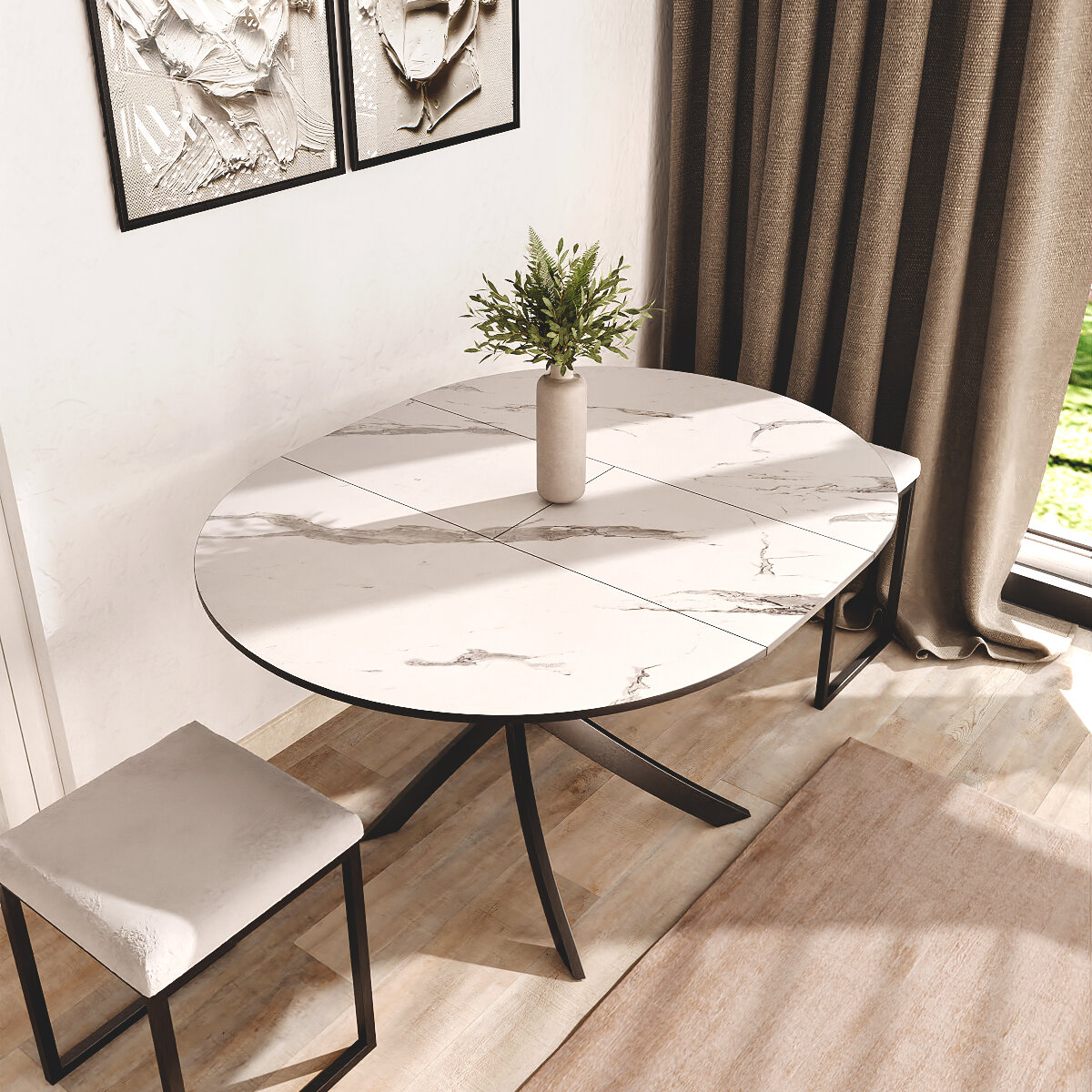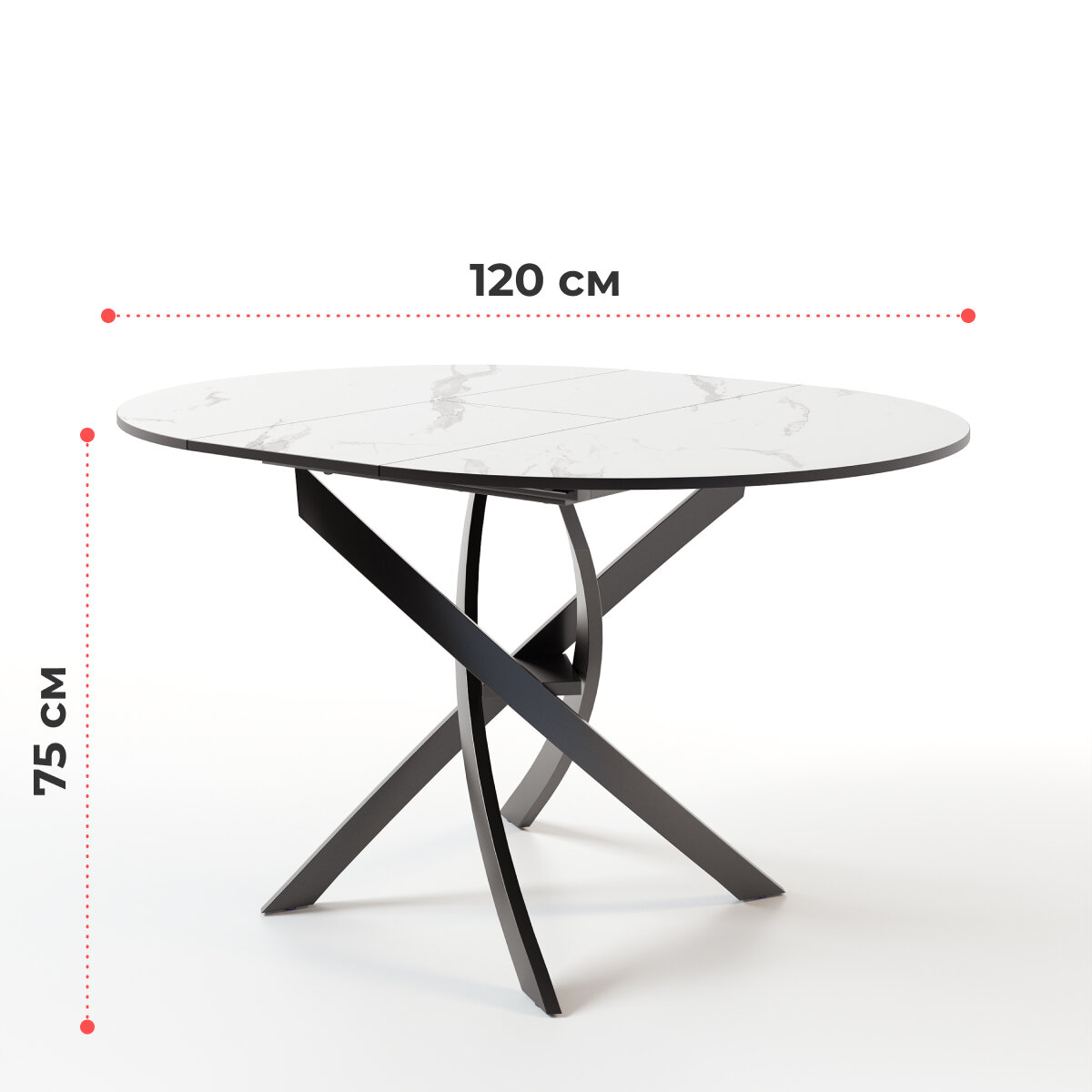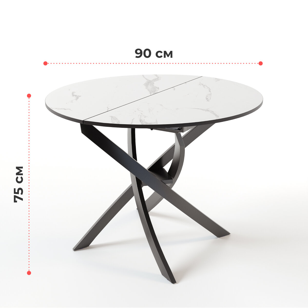 Купить Стол круглый обеденный Lerosco, раздвижной, белый мрамор, 90(120)х90х75 см