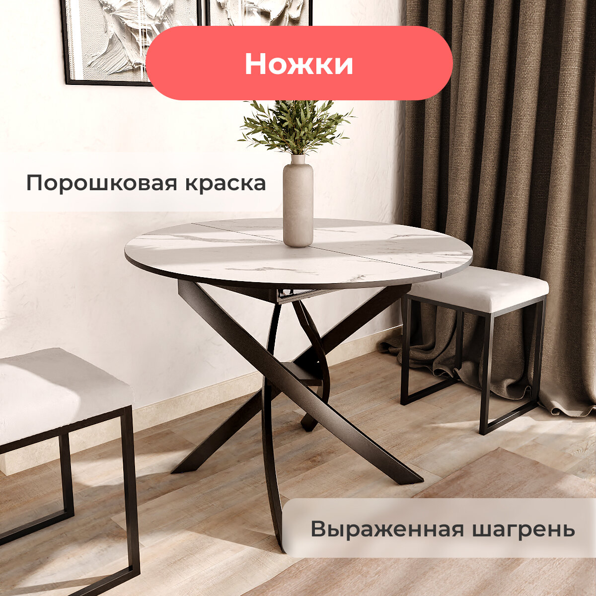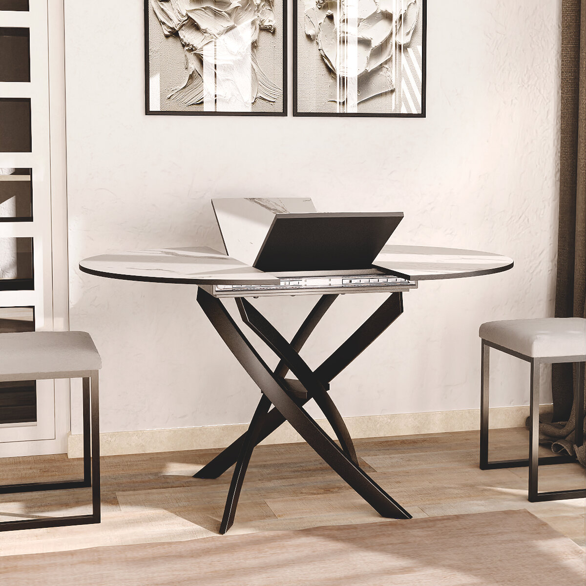 Стол круглый обеденный Lerosco, раздвижной, черный мрамор/даркстоун, 90(120)х90х75 см
