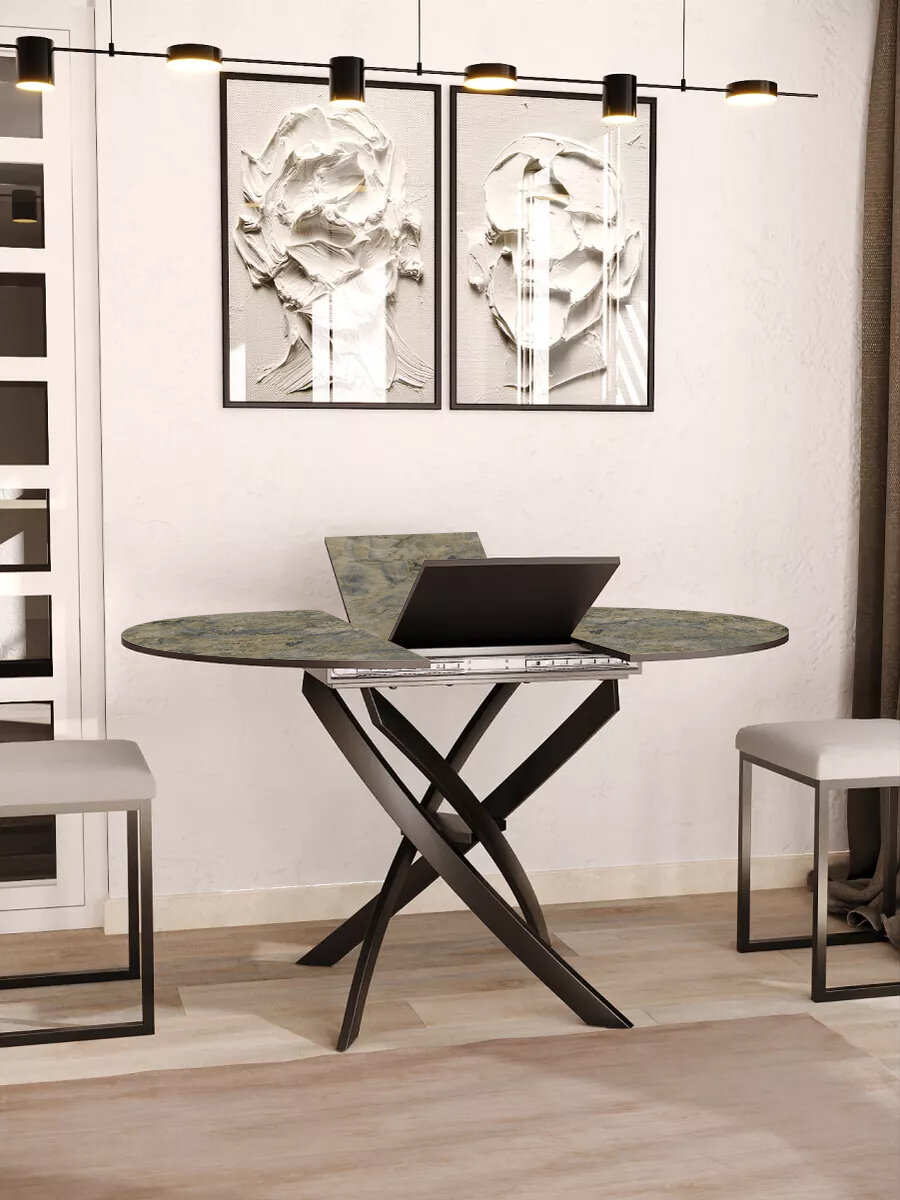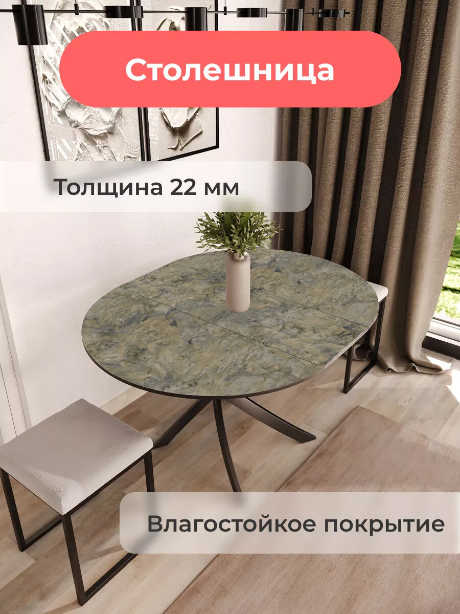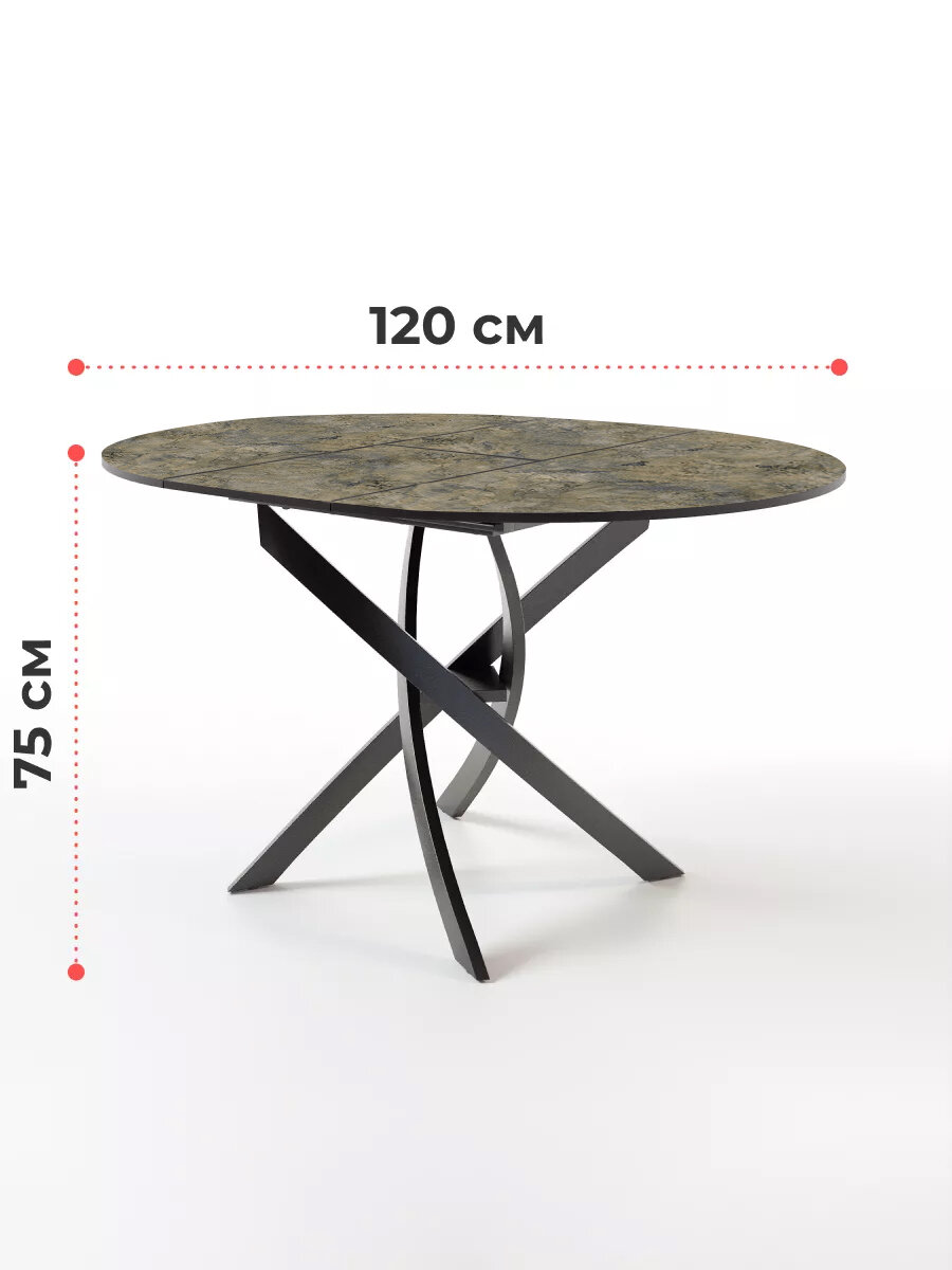 Стол круглый обеденный Lerosco, раздвижной, черный мрамор/даркстоун, 90(120)х90х75 см
