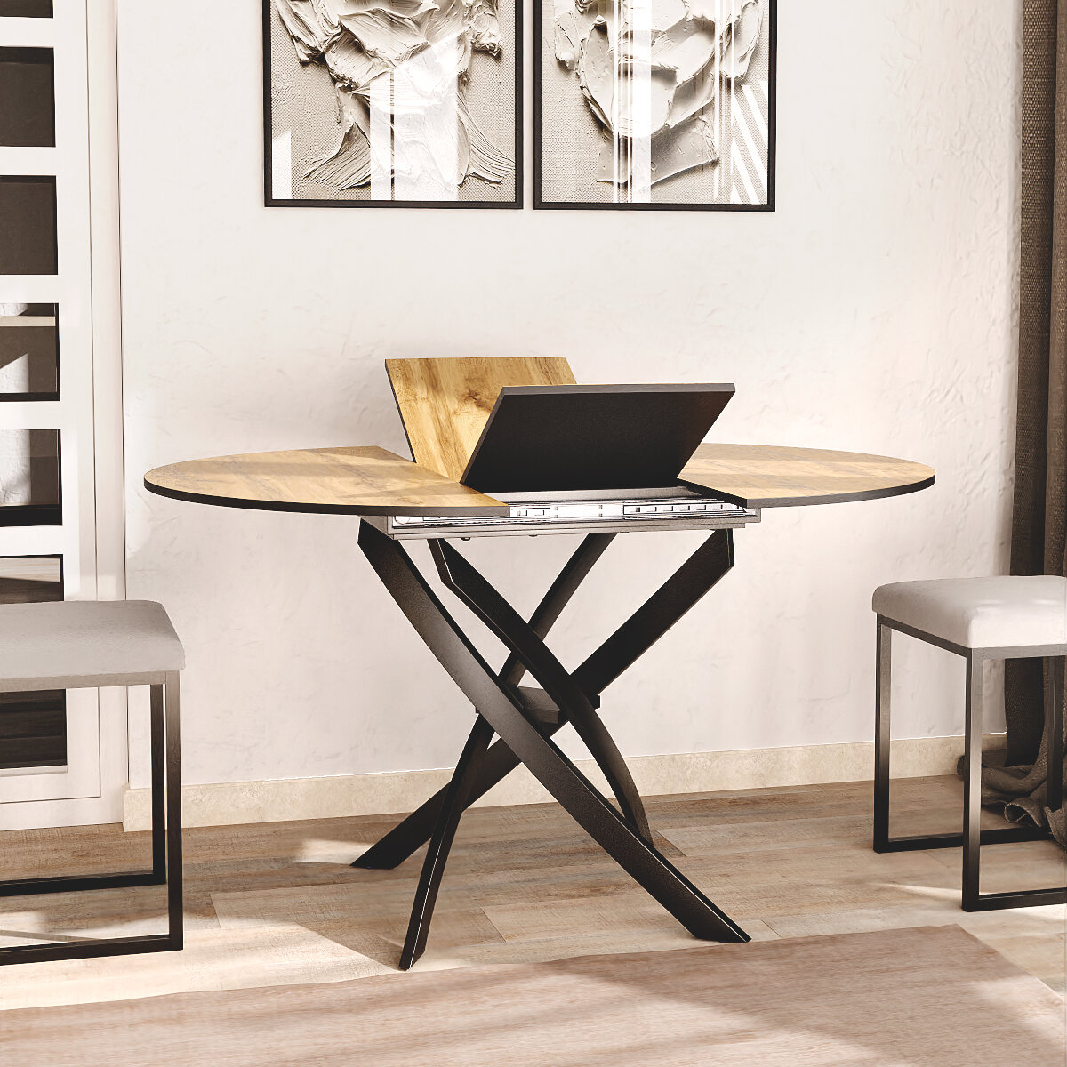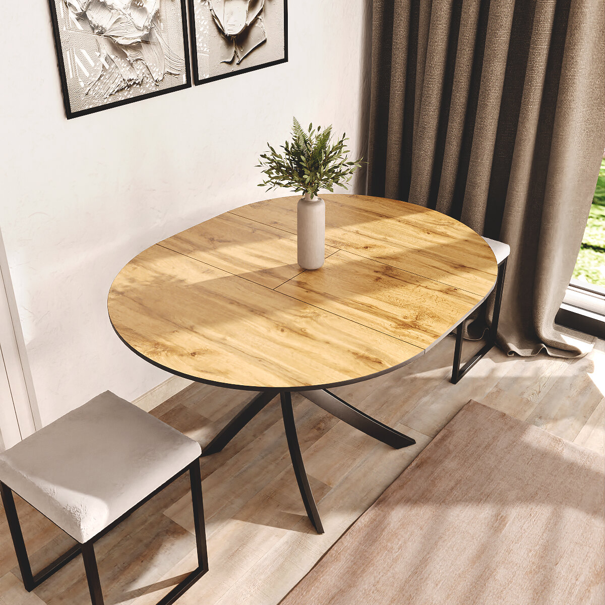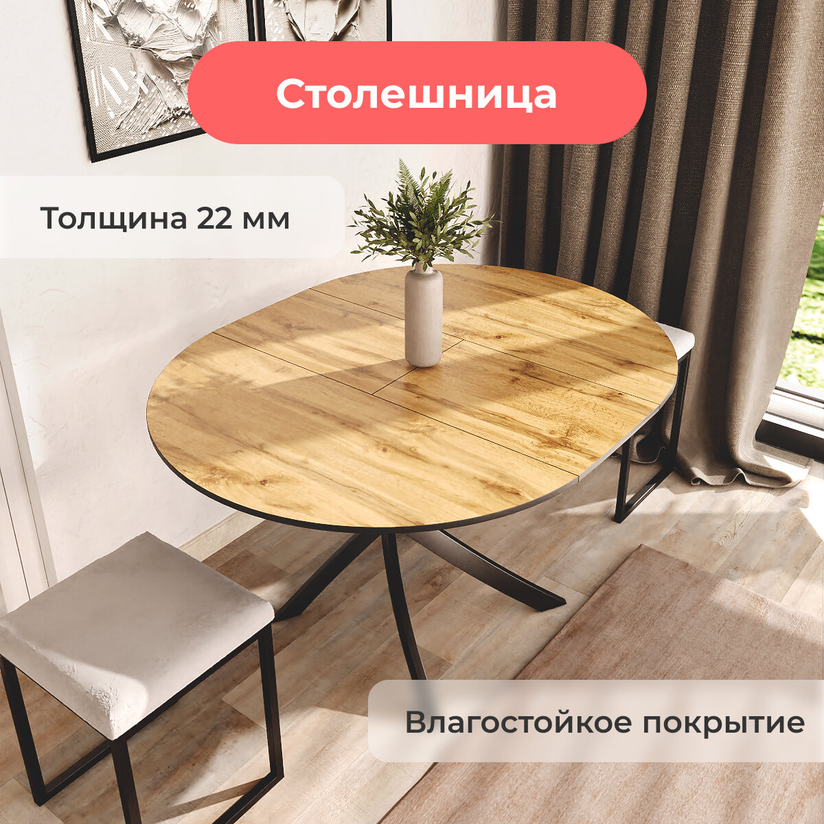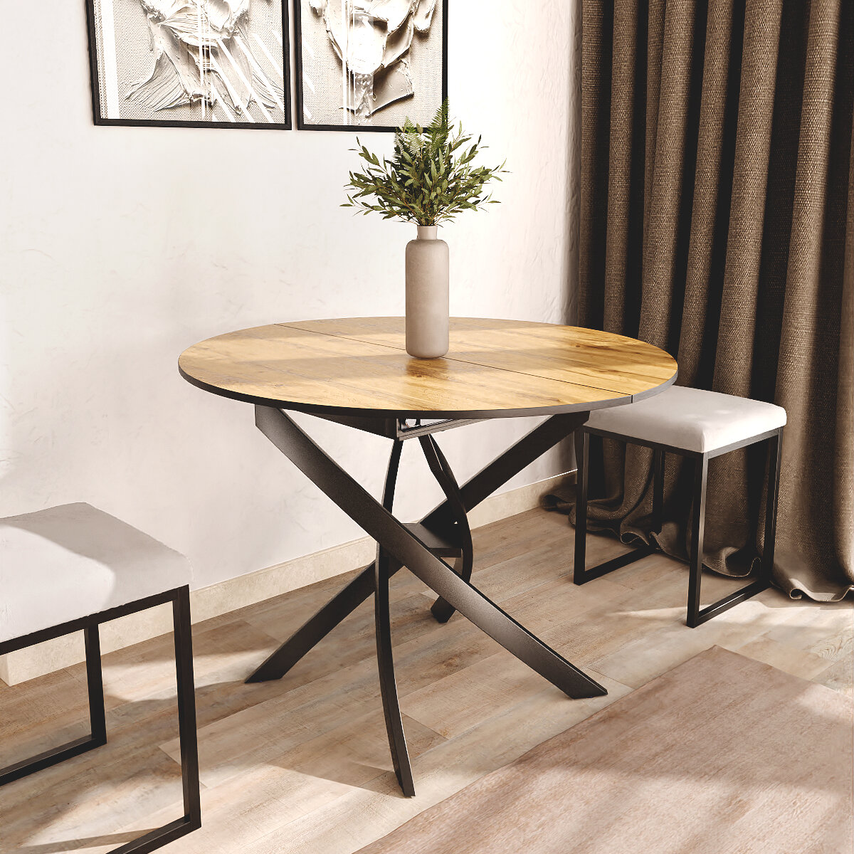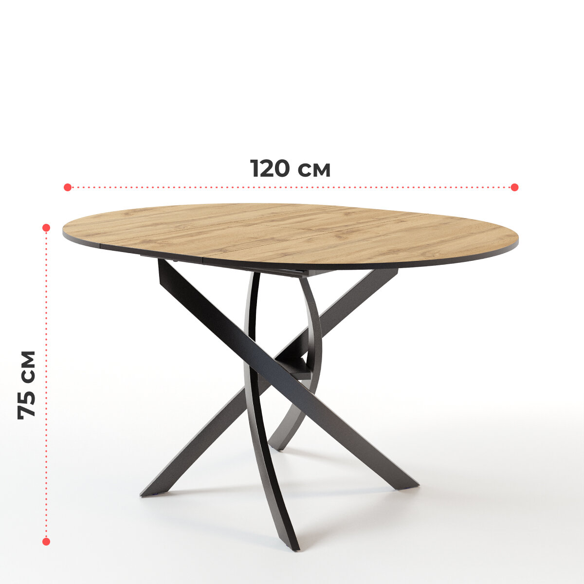 Купить Стол круглый обеденный Lerosco, раздвижной, дуб вотан, 90(120)х90х75 см