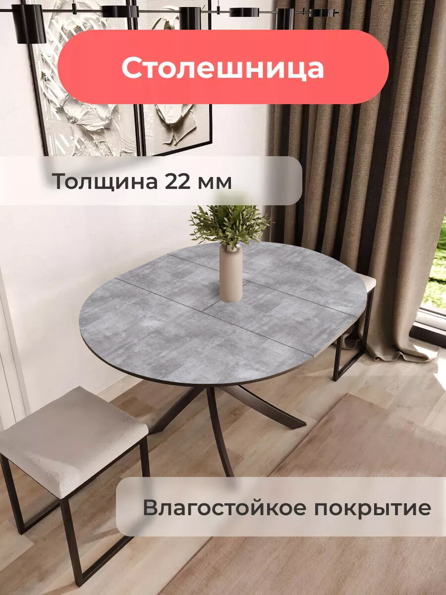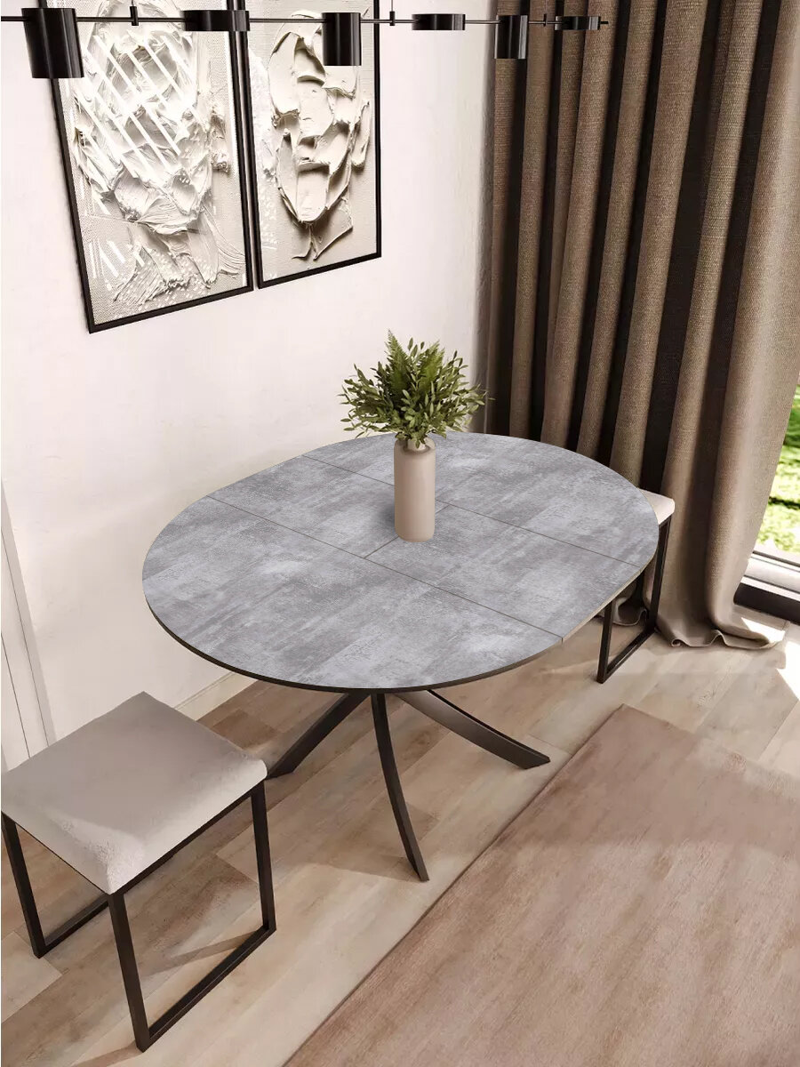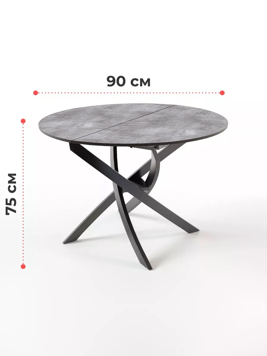 Купить Стол круглый обеденный Lerosco, раздвижной, серый бетон, 90(120)х90х75 см