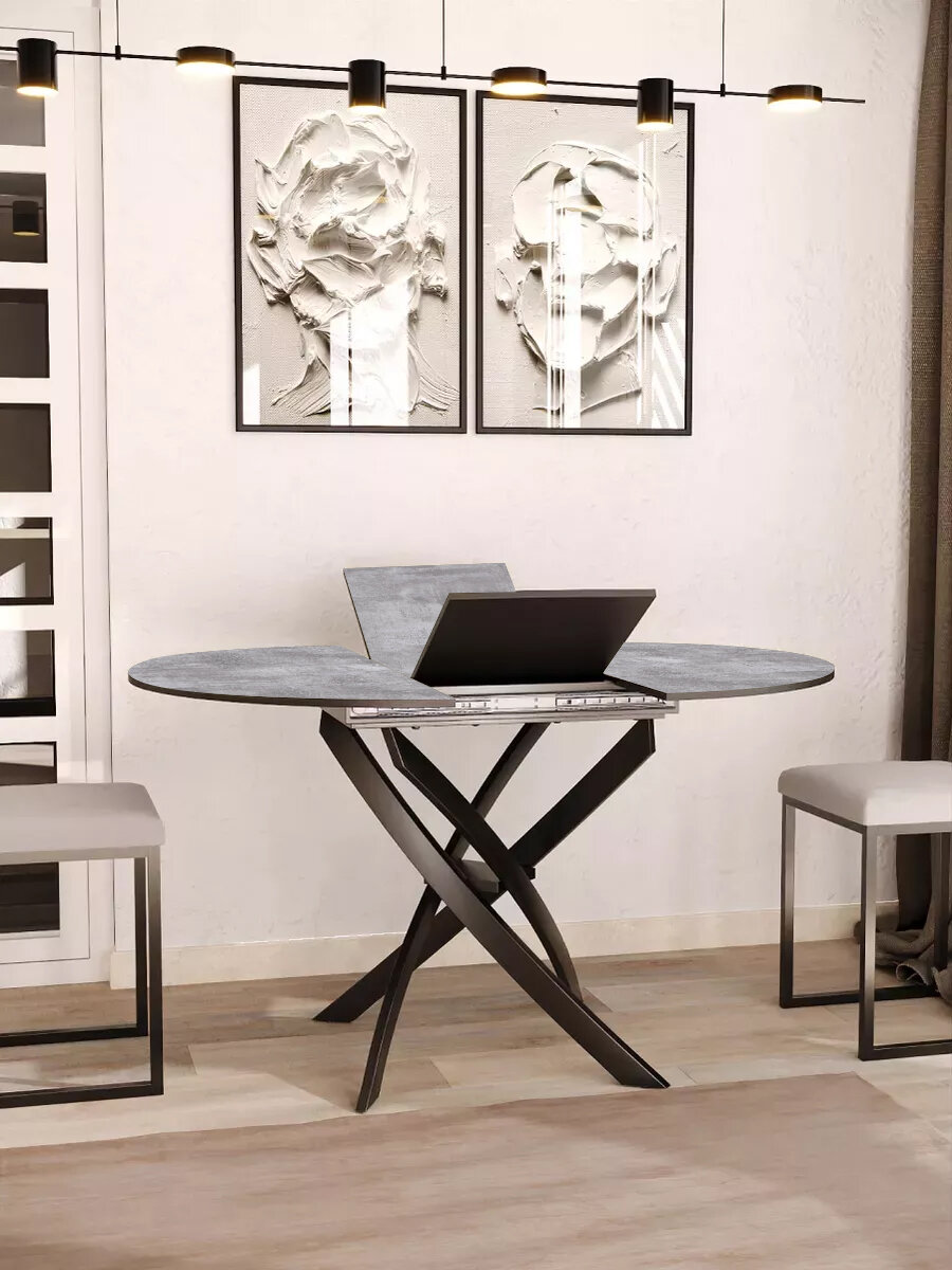 СохранитьСтол круглый обеденный Lerosco, раздвижной, серый бетон, 90(120)х90х75 см интересное:
