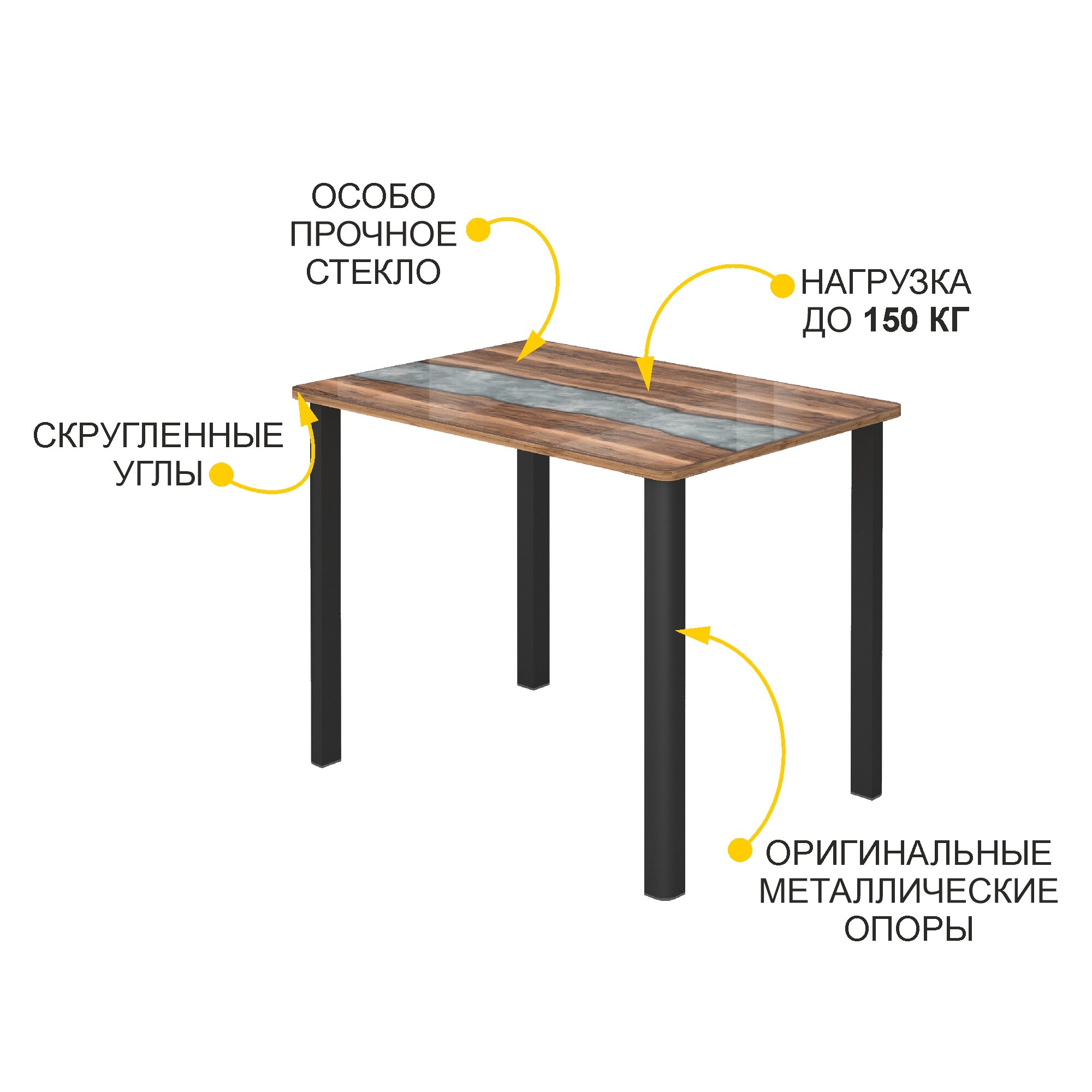 Стол обеденный Парма 17 (03) Река серебристая/Черный, 100х70х74 см интересное: