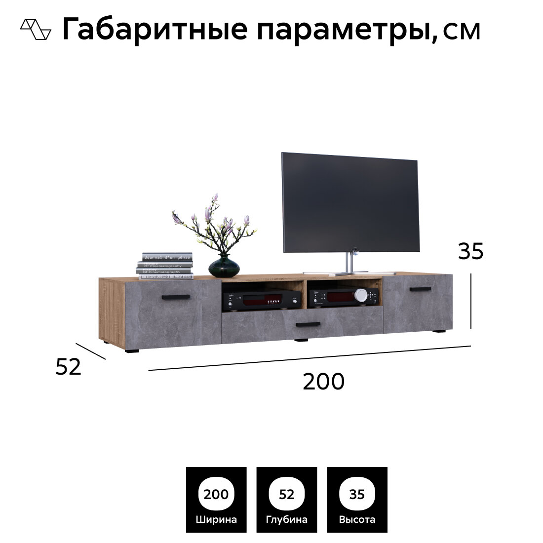 Тумба под ТВ Миф Нэнси New бетон светлый / сонома 200х52х35 см