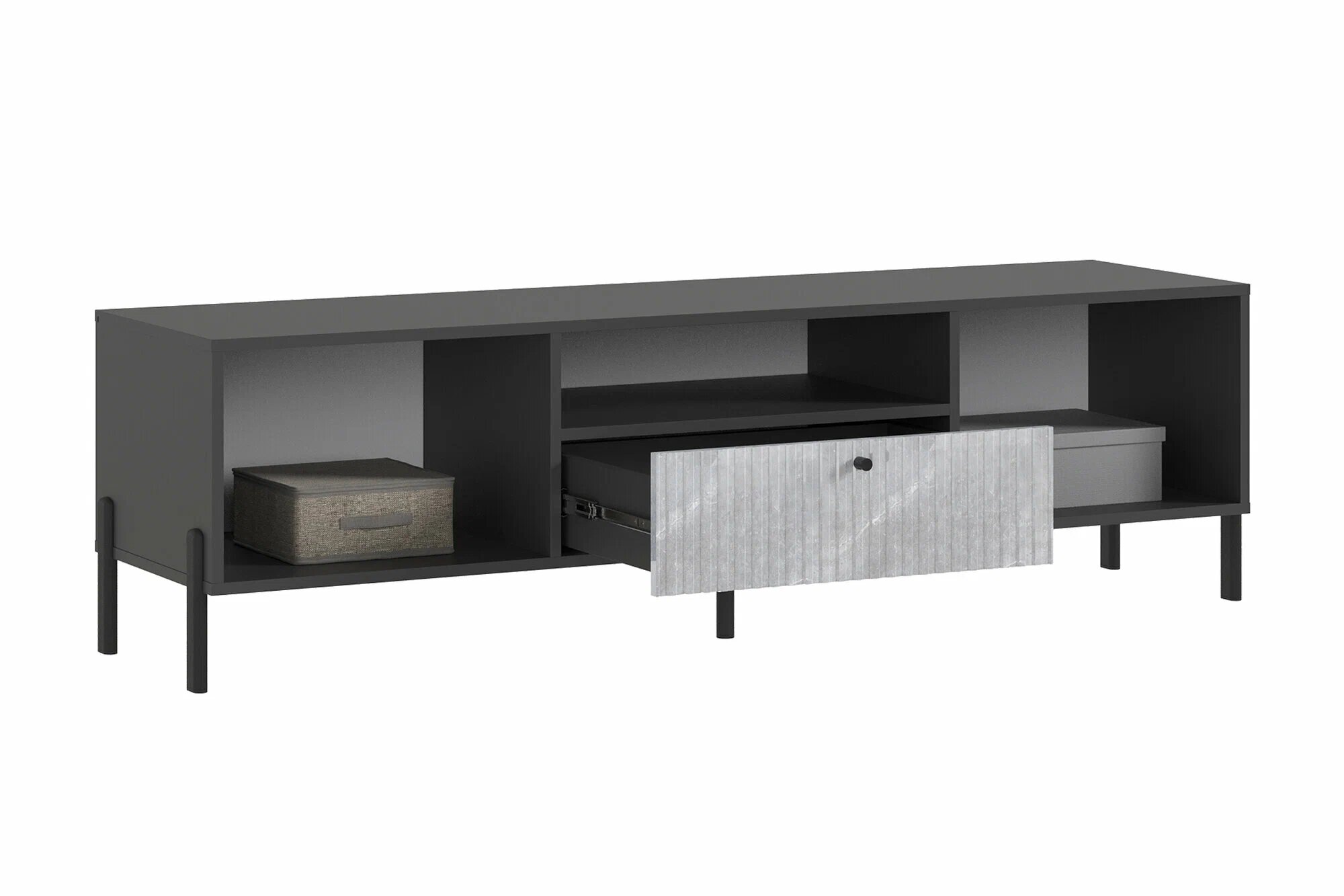 Купить ТВ-тумба МИФ"Оливия" 160*46*44.2 МАЛАЯ графит/мрамор глянец, скандинавский стиль