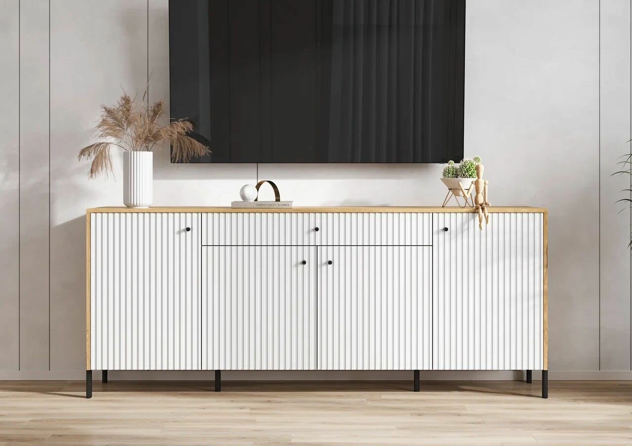 Купить Комод Оливия (металл) 2000х830х42,6 (Дуб Крафт/Браш Вайт)
