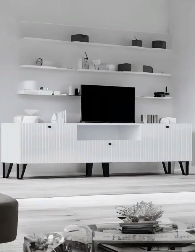 Купить ТВ-тумба МИФ"Оливия" 160*46*44.2 МАЛАЯ Белый/Белый глянец, скандинавский стиль