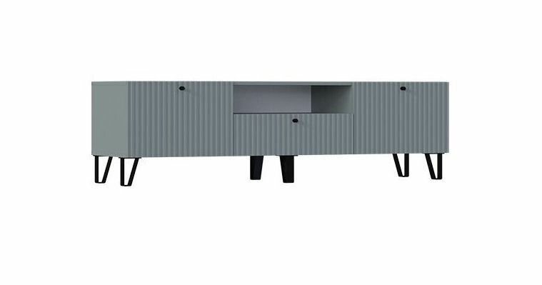 ТВ-тумба МиФ "Оливия", малая, ЛДСП/МДФ, 160х46х44.2см, скандинавский стиль, графит /графит софт