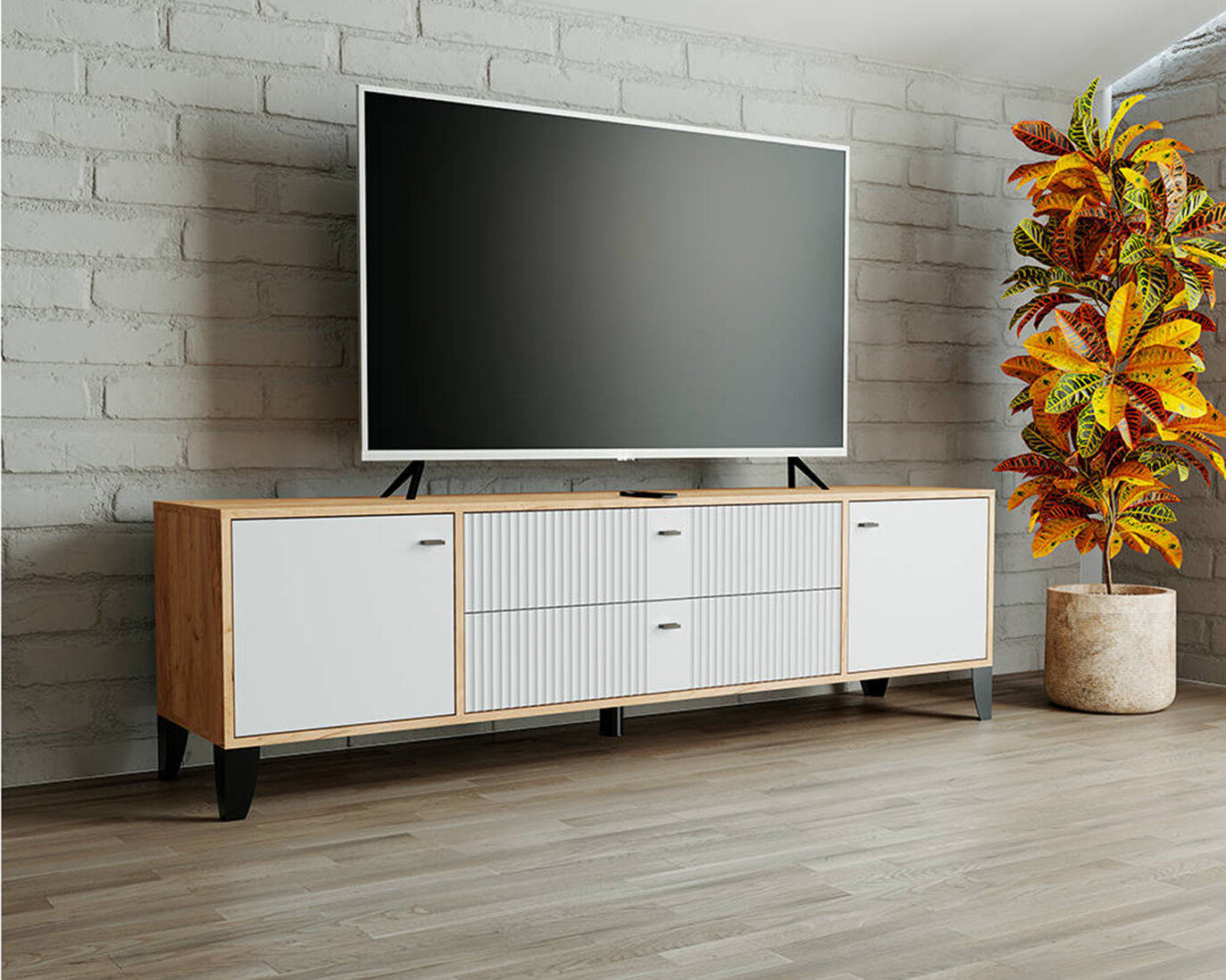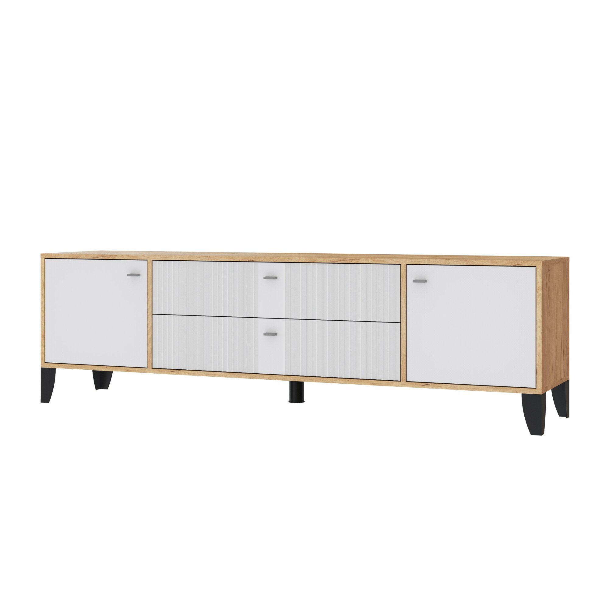 Купить Тумба под телевизор на ножках с ящиками Парус-10 (1802х530х400), дуб крафт золотой/карбон фарфор