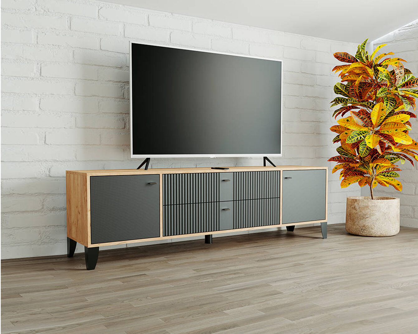 Тумба ТВ в гостиную «Парус-11», дуб крафт золотой/графит серый (1800х400х530)