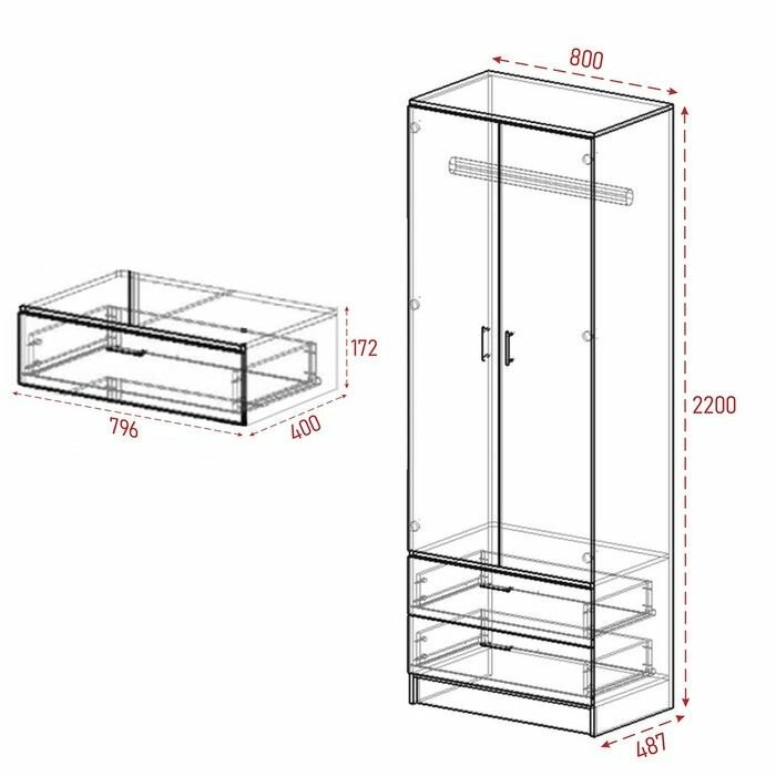 | Комплектация | Штанга для одежды, выдвижные ящики, полки |