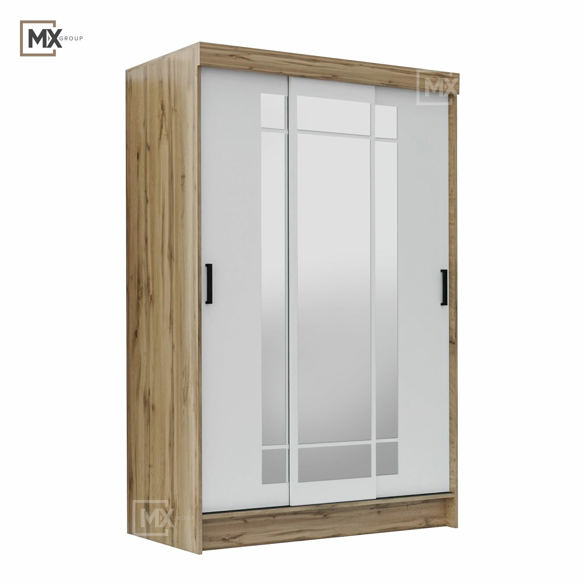 Шкаф-Купе Тайм-2/ Бассо/ Бруно Дуб Вотан/Белый, ЛДСП с зеркалом, полками, штангами, для прихожей, спальни, гостиной 1310х2000х500 мебельный РАЙ