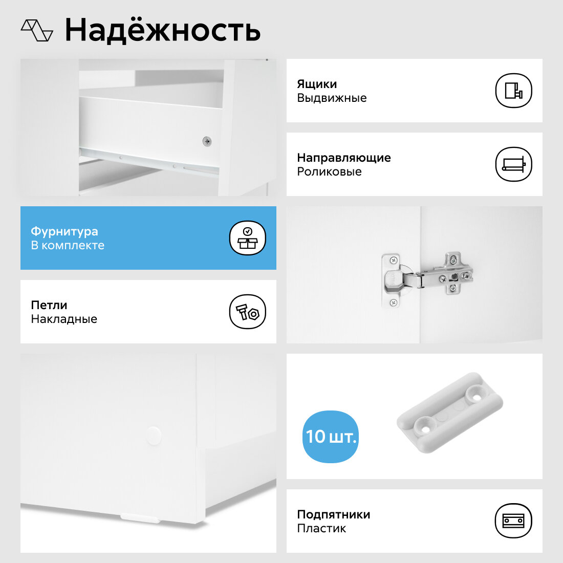 Шкаф 2-х створчатый Нонтон Эккервуд с ящиками белый текстурный 80.1x46.2x205.2 см
