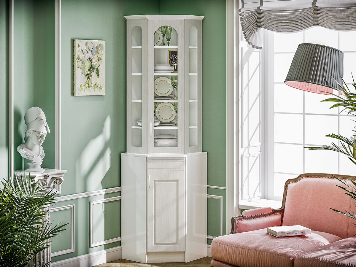 Буфет для посуды угловой Нонтон Констанция, белый матовый, 58 см