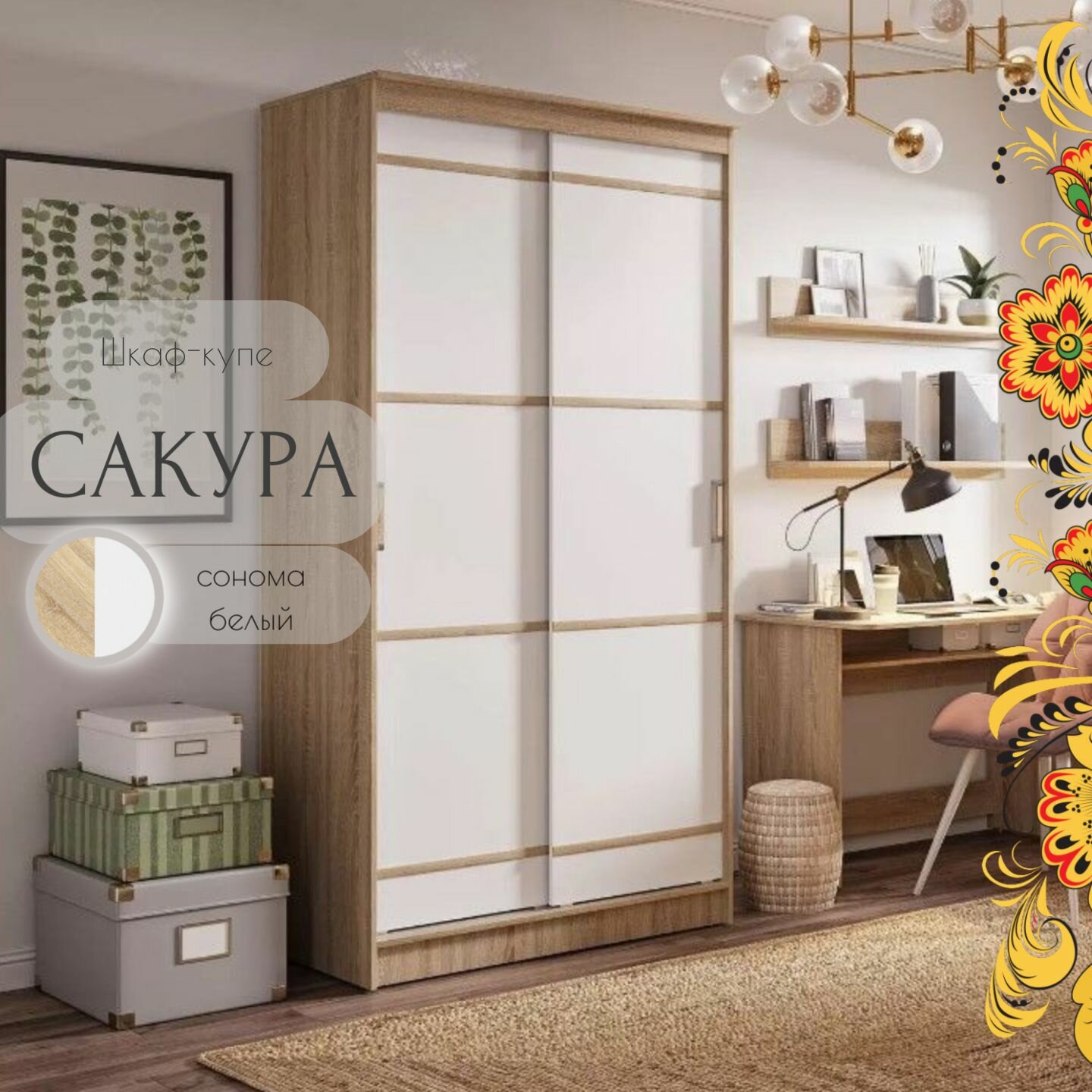 СохранитьПервый Мебельный Шкаф купе для одежды Сакура двухдверный, 114х61х222 см, с полками, Дуб Сонома / Белый интересное: