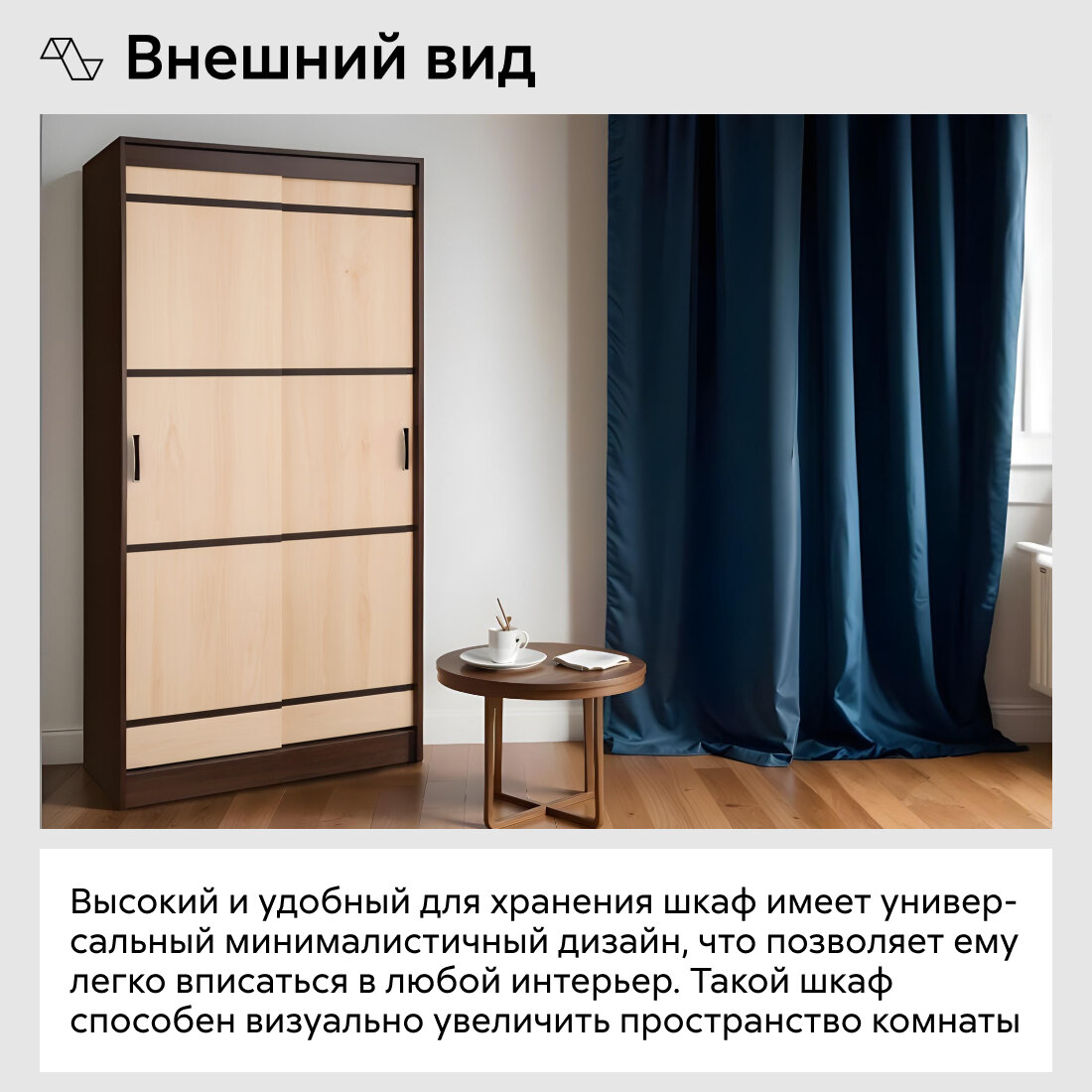Купить Первый Мебельный Шкаф купе для одежды Сакура двухдверный, 114х61х222 см, с полками, Венге / Лоредо