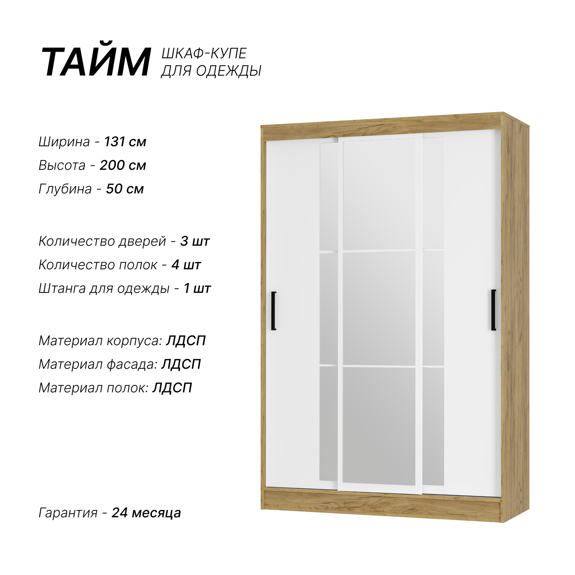 СохранитьШкаф-купе с зеркалом "Тайм" ШКК-03 (крафт/белый) интересное: