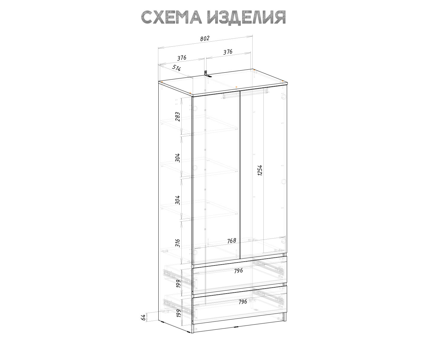 Купить Шкаф 2-х створчатый Симпл ШК-03 Графит
