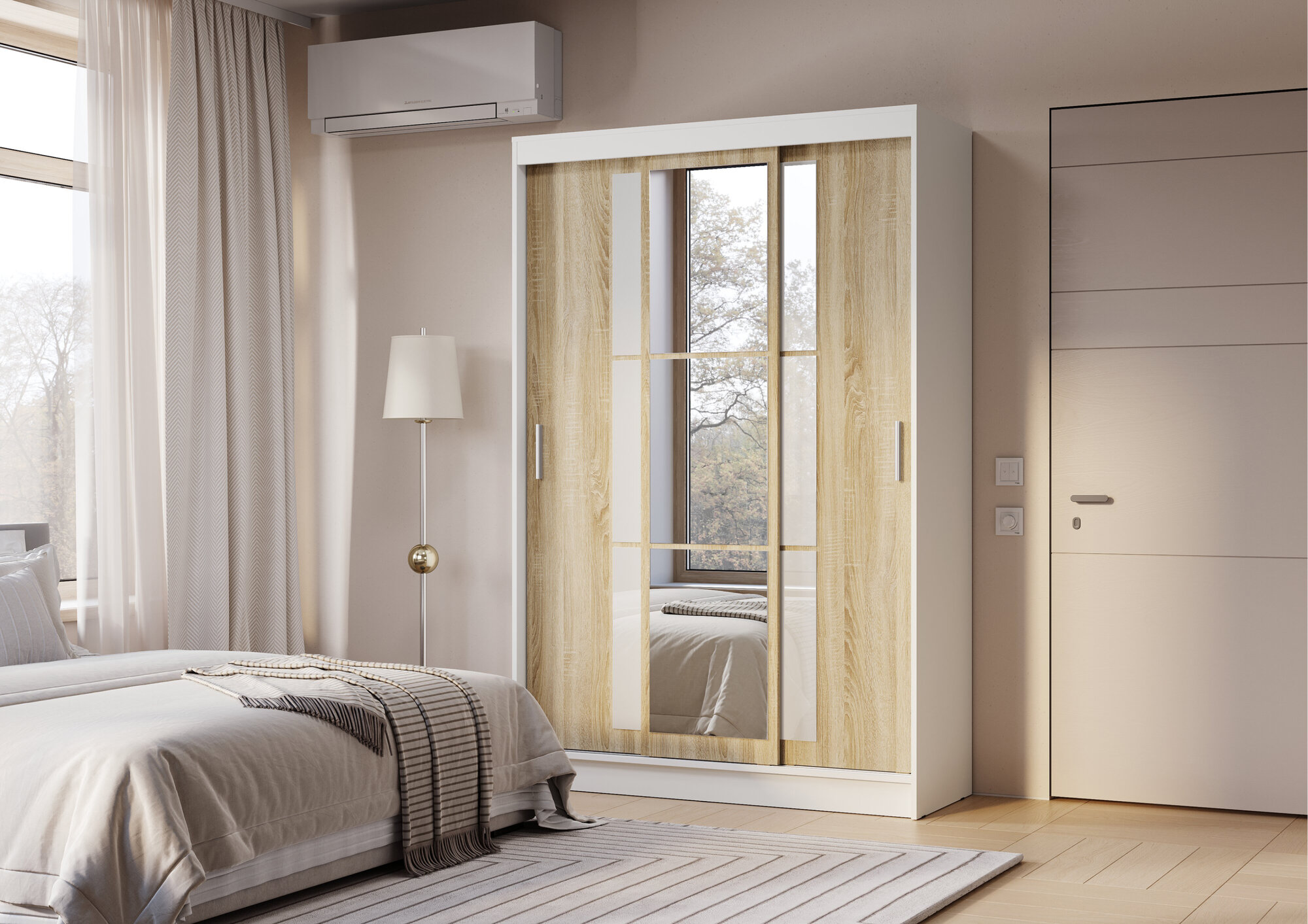Шкаф-купе для одежды Нонтон Сакура, дуб сонома / белый 150 см