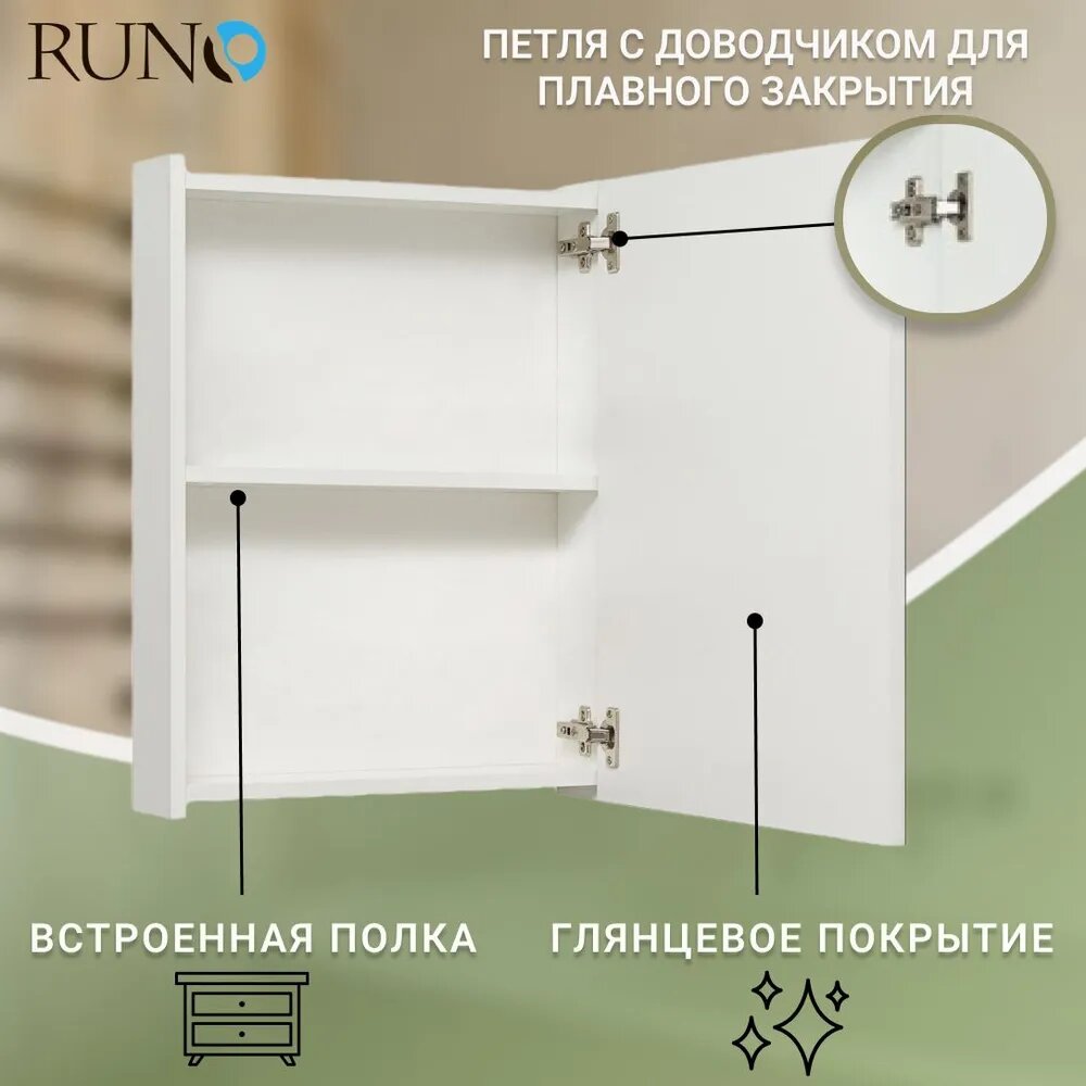 Шкаф в ванную с зеркалом Runo Лада 60, белый