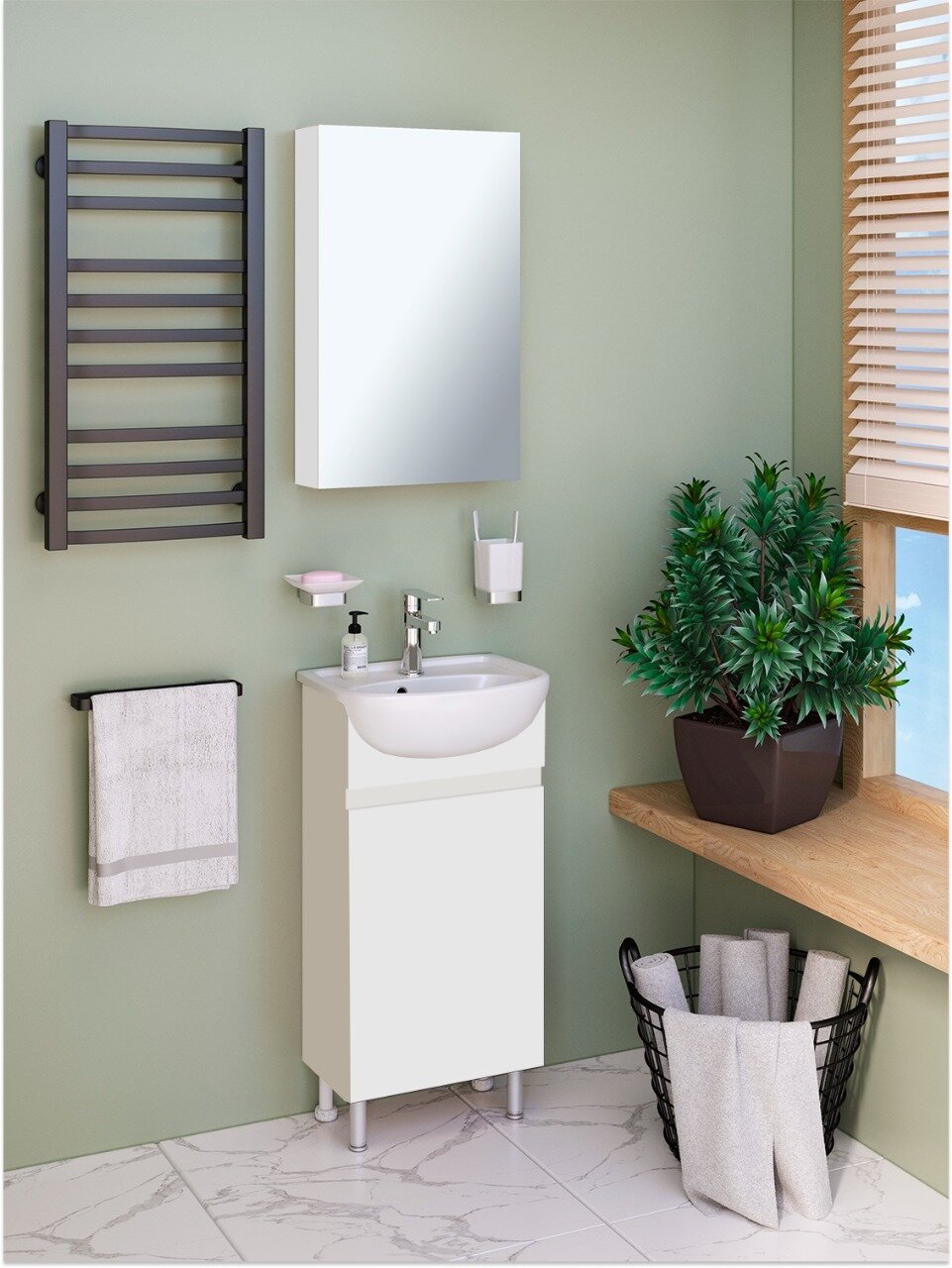 Шкаф в ванную с зеркалом Runo Лада 40, белый