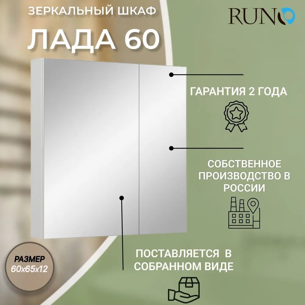 Зеркальный шкаф Runo Лада 60х65 белый (00-00001159)