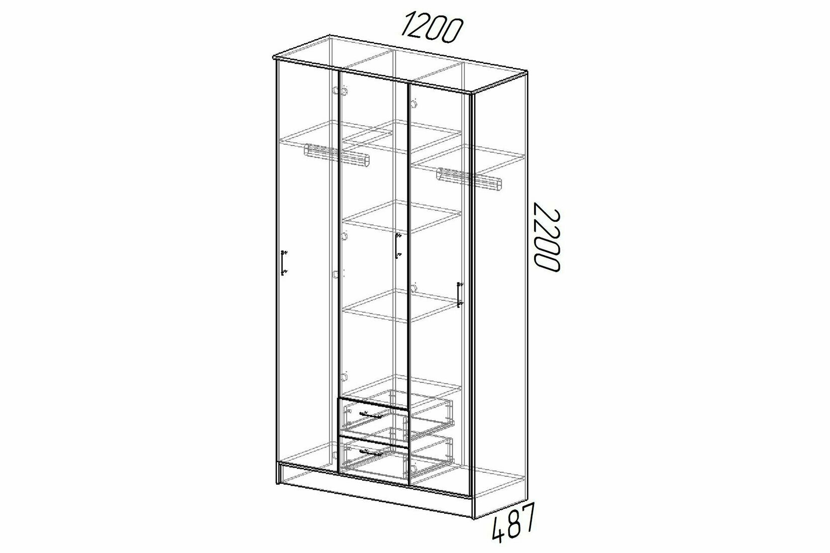 | Комплектация | Материал корпуса: ЛДСП. Материал фасадов: ЛДСП, зеркало. Материал ручек: пластик. Тип направляющих: роликовые. Тип штанг: продольные. Ориентация сборки: только так, как представлено на изображении. |