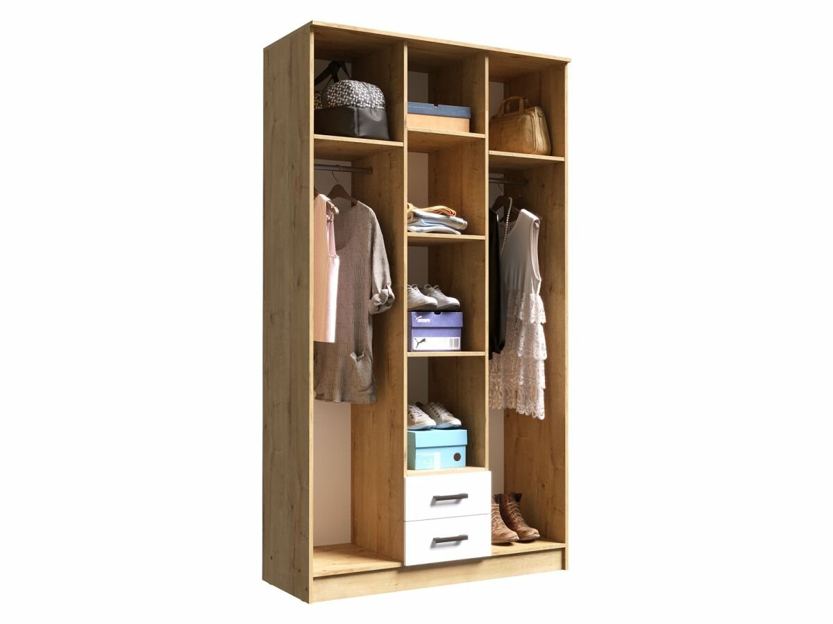 СохранитьПервый Мебельный Распашной шкаф для одежды Трио с полками, с ящиками, с зеркалом, 120х49х220 см, Дуб вотан / Белый гладкий интересное: