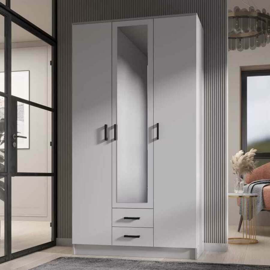 Шкаф ЭРА трио, с зеркалом, ЛДСП, 2 ящика, 3 двери, 120 х 220 х 48,7 см, Белый гладкий