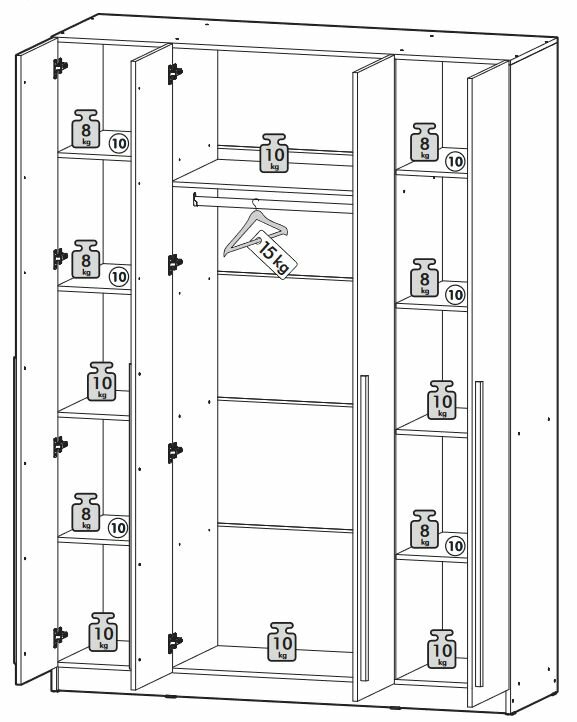 | Комплектация | Шкаф 1 шт. Монтаж зеркал к фасадам производится самостоятельно на двусторонний скотч и кляймеры. Дополнительно рекомендуется монтировать зеркало на клей, с пометкой "для зеркал". |